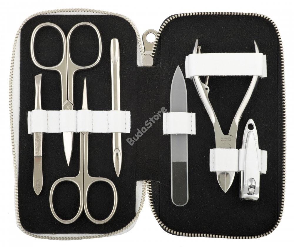 DUP DARINA 7 részes manikűrkészlet solingeni ollóval - 2304-01-461 20 180 Ft / db [2 db 2%] [5 db 3%] [10 db 5%] Gyártó: DUP Cikkszám: S052_2304-01-461 Vonalkód (EAN13): 8594904414619 Nagyon mutatós, nők és férfiak számára egyaránt ideális 7 részes manikűrkészlet cipzáras, fekete-fehér bőrtokban; DUP és solingeni eszközökkel, üvegreszelővel. Tartalma: solingeni hajlított körömvágóolló, solingeni hajlított bőrvágóolló, Dup körömvágó fogó (10,5 cm), ferde szemöldökcsipesz, kicsi körömcsipesz (5,5 cm), bőrfeltolólapát kaparóval, üveg körömreszelő (9 cm). Mérete: 14,5 cm x 8,5 cm x 2 cm. Mennyiség db Nem rendelhető