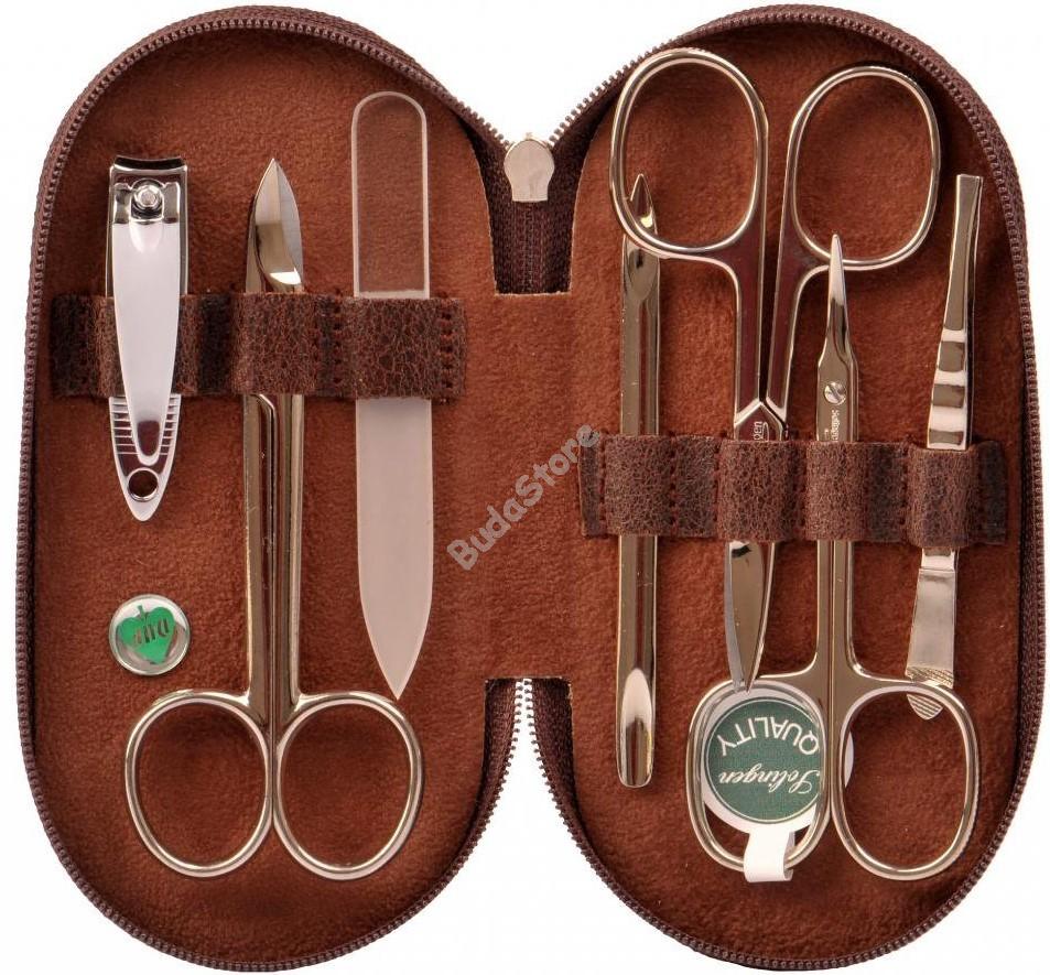 DUP TANA 7 részes solingeni manikűrkészlet - 2304-01-429 16 580 Ft / db [2 db 2%] [5 db 3%] [10 db 5%] Gyártó: DUP Cikkszám: S052_2304-01-429 Vonalkód (EAN13): 8594904414299 Nők és férfiak számára egyaránt ideális 7 részes manikűrkészlet cipzáras, barna bőrtokban; DUP és solingeni eszközökkel. Tartalma: solingeni hajlított körömvágóolló (9 cm), solingeni hajlított bőrvágóolló (9 cm), DUP erősített körömvágóolló, kicsi körömcsipesz (5,5 cm), egyenes szemöldökcsipesz, üveg körömreszelő (8,5 cm), bőrfeltolólapát kaparóval. Mérete: 14 cm x 7,5 cm x 2 cm. Mennyiség db Kosárba tesz