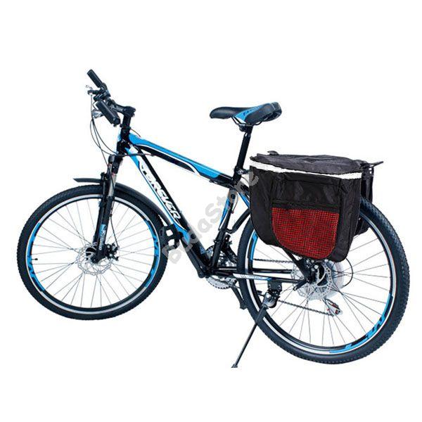 A kerékpárral közlekedők és túrakedvelők jól tudják, hogy egy kerékpártáska szinte nélkülözhetetlena szükséges holmik számára. Dupla kerékpártáskánk 25 literes űrtartalommal, 2 kisebb és 2 nagyobb zsebbel rendelkezik, a hátsó ülésre/vázra helyezhető. Kisebb túrákra, kirándulásokra kifejezetten alkalmas.