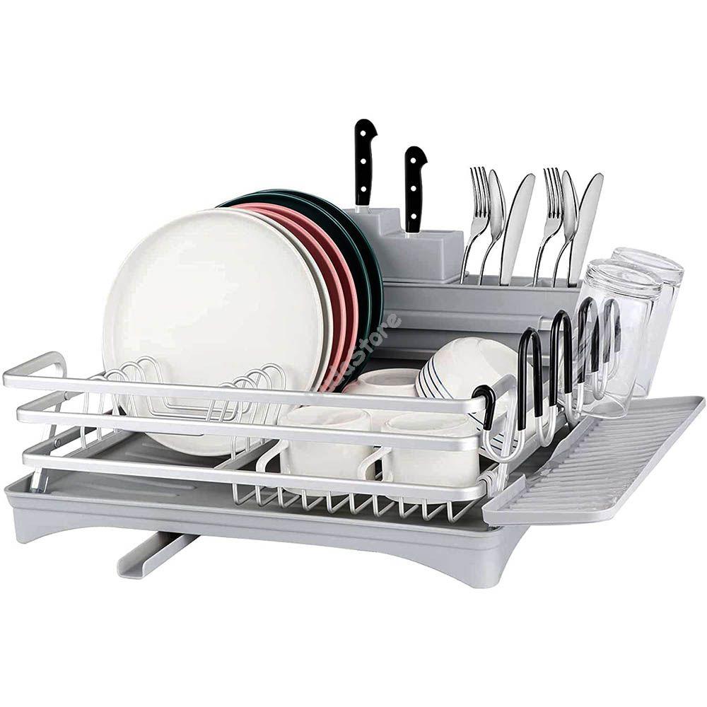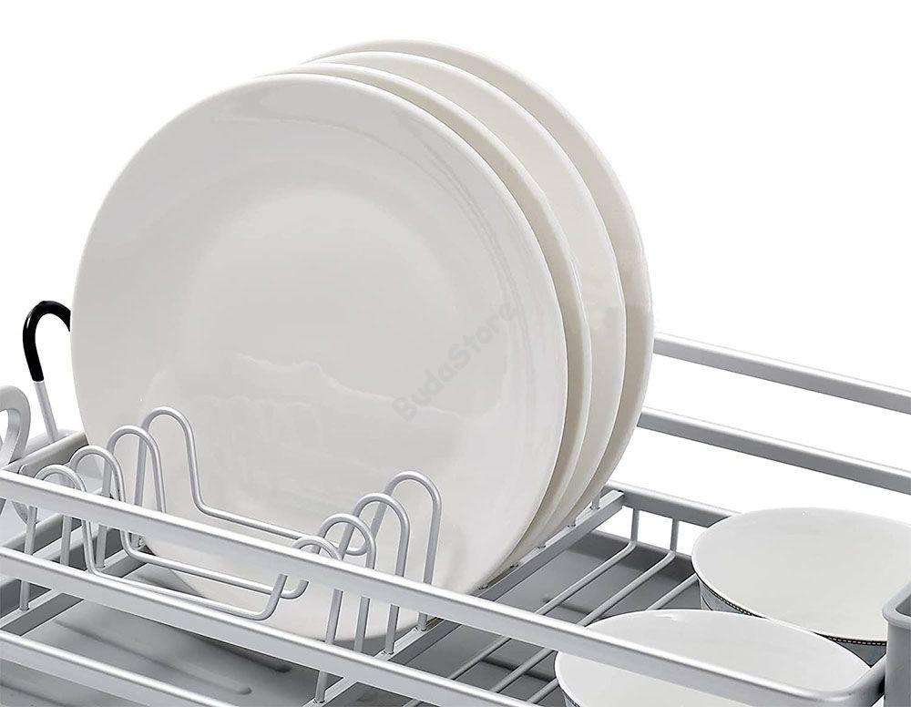 Ez a fajta edényszárító csepegtető tálcával igazán kényelmes kézi mosogatást eredményez, köszönhetően a rajta található, sokfajta tároló és szárító rekesznek. Külön helyet kapnak a vizes poharak, a bögrék és kistányérok, valamint a talpas poharak is. Evőeszköztartójában 7 darab eltérő méretű kést tárolhatunk.