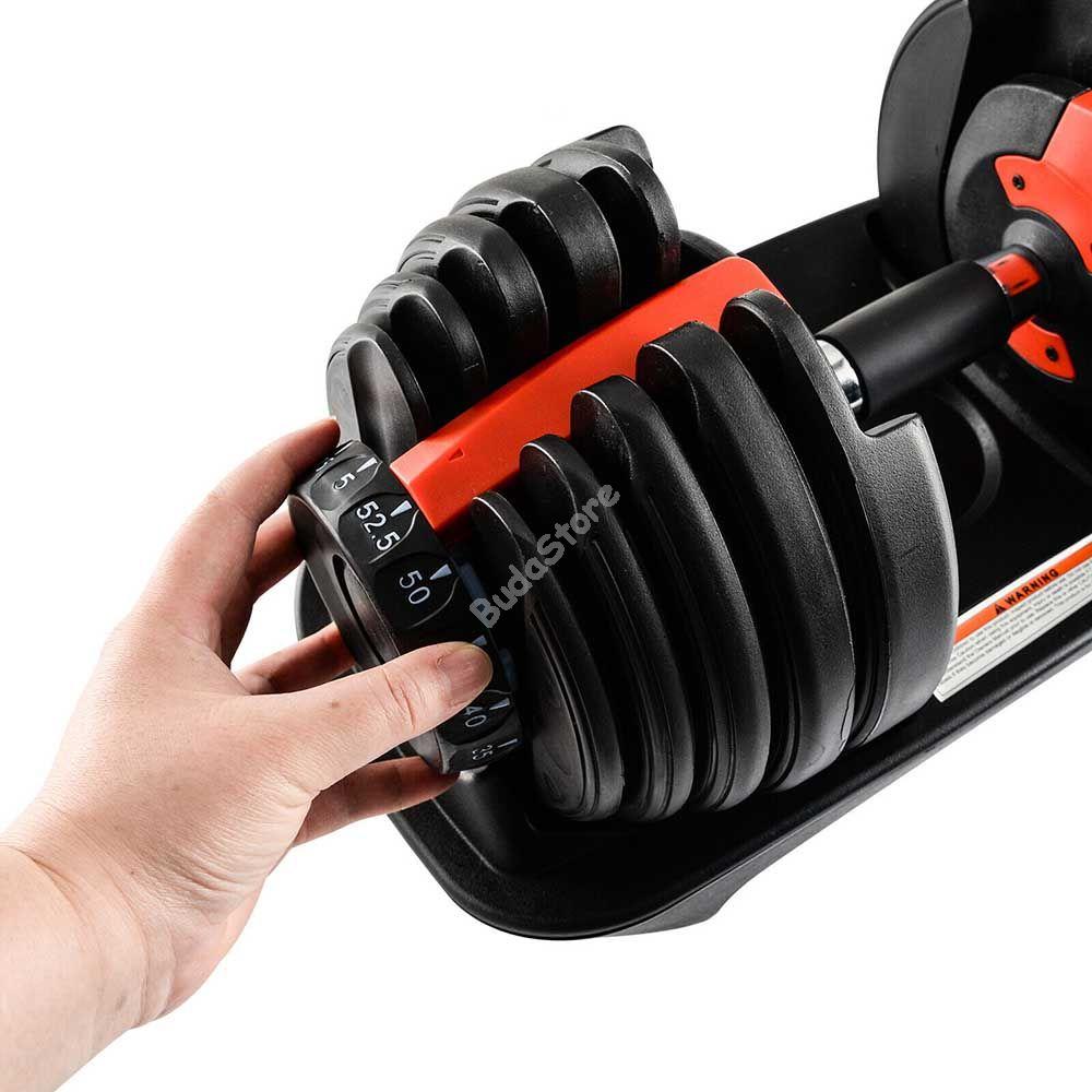Az egykezes súlyzó tökéletes választás az otthoni edzéshez. Egyaránt alkalmas a tricepsz, bicepsz illetve a hát és hasizom erősítésére is. A szetthez 10 db levehető súly tartozik, így igyény szerint alakíthatod edzéstervedet, váltogatva a súlyok nehézségét. Tárolása rendkívül praktikus a tartó tálcának köszönhetően, amely stabilan tartja a súlyzót, hogy  biztosan ne guruljon el.