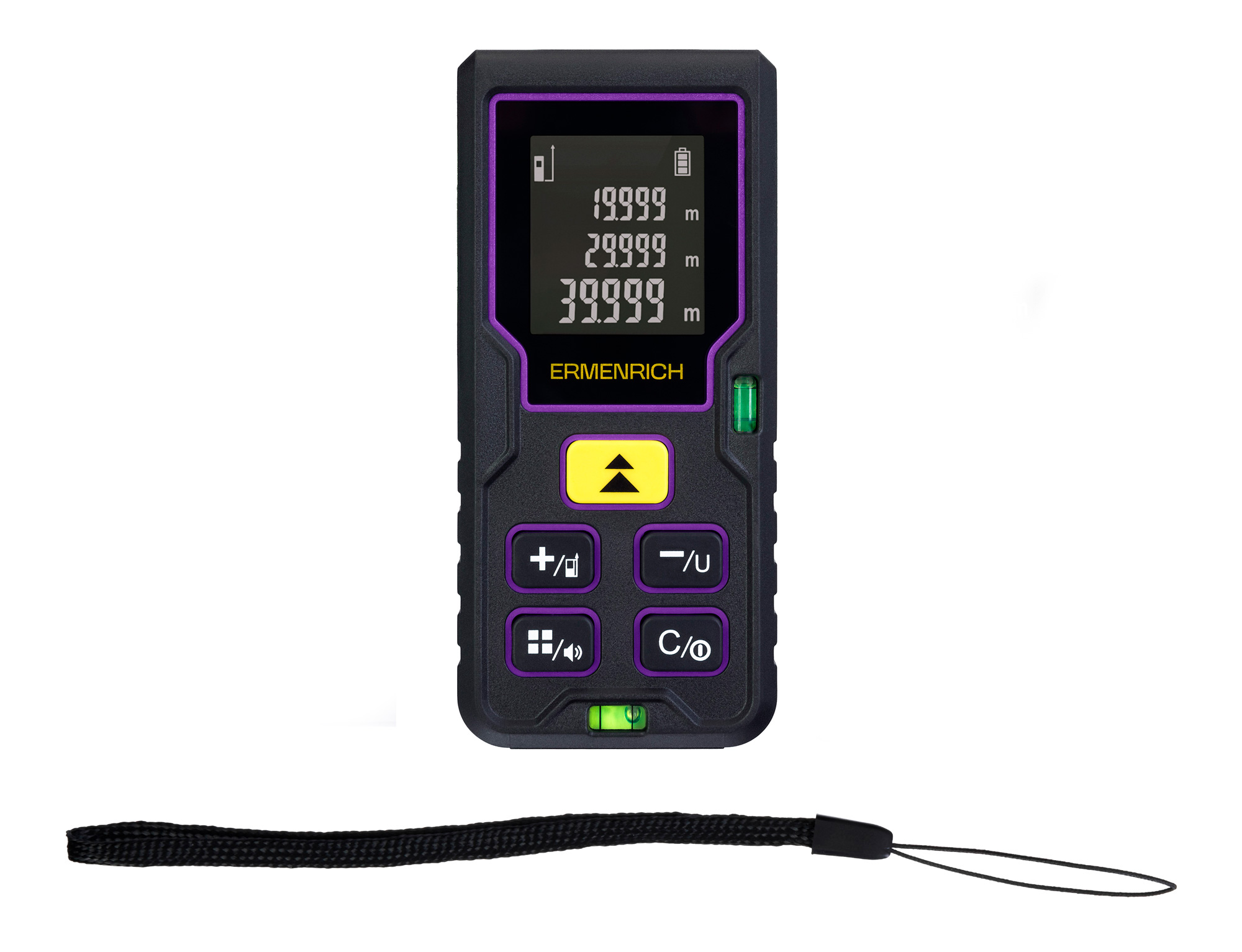 Ermenrich Reel PLUS GD40 lézeres mérő 84643 13 290 Ft / db [2 db 2%] [5 db 3%] [10 db 5%] Gyártó: ERMENRICH Cikkszám: S101_84643 Súly: 0,21 kg Átvétel: Ez a termék boltunkban személyesen is átvehető. A szerszám DűhrerSN lézersugárzó-javító technológiát használ. Tudjon meg többet Az Ermenrich Reel PLUS GD40 lézeres mérő kis és közepes méretű helyiségekben különféle mérésekhez alkalmas mérőműszer. Ez a sokoldalú eszköz használható az építőiparban, a felújításban és a belsőépítészetben, a gyártásban, az összeszerelési munkákban és számos más helyen. A lézeres mérő által mérhető maximális hossz 40 méter. Az egyszeri távolságmérésen felül a lézeres mérő folyamatos mérési üzemmódban terület- és térfogatmérésre is képes. Az Ermenrich Reel PLUS GD40 Pitagorasz-tétel funkciója használható két pont közötti távolság automatikus kiszámítására közvetett adatok alapján, ha a lézer nem irányítható mindegyik pontra. Az eszköz 2 db AAA elemmel működik. Több mint 5000 mérés elvégezhető elemcsere nélkül. Az ergonomikus kialakítás és a 3 soros LCD kijelző kényelmes működést biztosít nehézségekkel teli munkakörnyezetben is. Az elemek kímélése érdekében a lézer és maga a készülék automatikus kikapcsolási funkcióval rendelkezik, valamint alacsony töltésszint-jelzővel. Fő jellemzők: Többféle mérés: távolság/hossz, szög, térfogat Távolság kiszámítása közvetett pontok használatával (Pitagorasz-tétel) Mérés egyszeri és folyamatos mérési üzemmódban Több mint 5000 mérés elemcsere nélkül, előzmények rögzítése 20 csoportra vonatkozóan Kompakt, ergonomikus kialakítás, könnyen tartható egy kézben MárkaErmenrichSzavatosság5 évEAN5905555023588A csomag méretei (HxSzxM):17x12x4 cmSzállítási súly0.21 kgTípuslézerEgyszeri távolságmérési módyesKeresési üzemmódyesMérési tartomány0,05–40 mMértékegységek (hossz)ft, in, mMérés pontossága±2 mmLézersugár színepirosLézeres jelölő1-es osztály, 620–690 nm, <1 mWTerületmérésyesMértékegységek (terület)m², sq.ft.Térfogat méréseyesMértékegységek (térfogat)m3, cu.ft.Pitagorász-tétel funkcióyesÖsszeadás és kivonásyesReferenciapontyesHalk módyesLézersugár/készülék automatikus kikapcsolás30/180 másodpercKijelzőn látható sorok száma3Előzmény-nyilvántartás20 csoportTápellátás2 db AAA elem (a készlet nem tartalmazza)Egy elemkészlet üzemideje>5000 mérésLemerülőben lévő elem jelzőlámpájayesÜzemi hőmérséklet-tartomány, °C0...+40Felhasználói szinthobbiHasználatuniverzális Mennyiség db Kosárba tesz