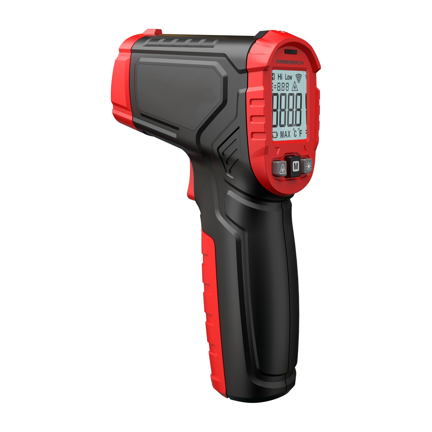 Ermenrich Seek FR20 infravörös hőmérő 82956 6 350 Ft / db [2 db 2%] [5 db 3%] [10 db 5%] Gyártó: ERMENRICH Cikkszám: S101_82956 Súly: 0,20 kg Átvétel: Ez a termék boltunkban személyesen is átvehető. Az Ermenrich Seek FR20 érintésmentes infravörös hőmérő a test, az objektumok és a környezet hőmérsékletének mérésére szolgál. A hőmérő (pirométer) működési elve az objektum hősugárzásának az infravörös spektrumban történő mérésén alapul. Ez lehetővé teszi a mérések fizikai kontaktus nélkül történő elvégzését, ha nem lehet vagy nem biztonságos az objektumhoz közel menni. A készülék alkalmas laboratóriumi körülmények között magas és alacsony hőmérséklet mérésére, technológiai folyamatok megfigyelésére, valamint hőtermelő berendezések és erőművek diagnosztikájára. A hőmérő 0,5 másodperc alatt meghatározza a –50 és +600 °C közötti tartományban az adott objektum hőmérsékletét, lehetővé téve több gyors mérést vagy a hőmérséklet folyamatos ellenőrzését (ehhez csak tartsa lenyomva a „ravaszt”, majd engedje el az érték befagyasztásához). Beállíthat felső és alsó hőmérsékleti határértékeket, amelyek elérése esetén a hőmérő jelet ad. A mérési eredmények Celsius vagy Fahrenheit fokban jelennek meg a képernyőn. Az egyszerű használat érdekében a készülék lézermutatóval rendelkezik, amellyel a hőmérő pontosan a mért objektumra irányítható. A hőmérő (külön megvásárolható) AAA elemekkel működik. Az alacsony töltésszint-jelző figyelmezteti Önt, ha a tápellátást ki kell cserélni. Az energiatakarékos használat érdekében a készülék 30 másodperc inaktivitás után automatikusan kikapcsol. Főbb jellemzők: Érintésmentes hőmérsékletmérés –50 és +600 °C között Az aktuális érték befagyasztása, minimális és maximális hőmérsékleti értékre vonatkozó riasztások 0,5 másodperc alatti reakcióidő AAA elemekkel működik, töltöttségi szintjelzővel, automatikus kikapcsolás funkcióval rendelkezik MárkaErmenrichSzavatosság5 évEAN5905555027319A csomag méretei (HxSzxM):5x12x19 cmSzállítási súly0.2 kgTípusinfravörös hőmérőBeépített funkciókhőmérő=== Elválasztójel ===Hőmérő (hőmérséklet)Mértékegységek°C, °FMérési tartomány−50 °C és +600 °C közöttPontosság±3 °C a –50 és 0 °C közötti tartományban ±(2,0%+2 °C) a 0 és +600 °C közötti tartománybanPontosság±(2,0%+2 °C) a 0 és +600 °C közötti tartományban, ±3 °C a –50 és 0 °C közötti tartománybanReakcióidő<0,5Optikai felbontás (D:S)12:1Emisszivitás0,10–1Spektrális válasz, μm8 — 14=== Elválasztójel ===Általános műszaki jellemzőkMin./max. riasztásyesTartás funkcióyesHatárérték funkció (Min/Max)+ (csak maximumok)Lézer630–670 nm, <1 mWLézerfény-vezérlésyesKépernyőmonokróm Kijelző háttérfényyesLemerülőben lévő elem jelzőlámpájayesTápellátás2 db AAA elem (a készlet nem tartalmazza)Automatikus kikapcsolásyesBiztonsági szabványokEN60825-1, EN61326-1 Mennyiség db Nem rendelhető