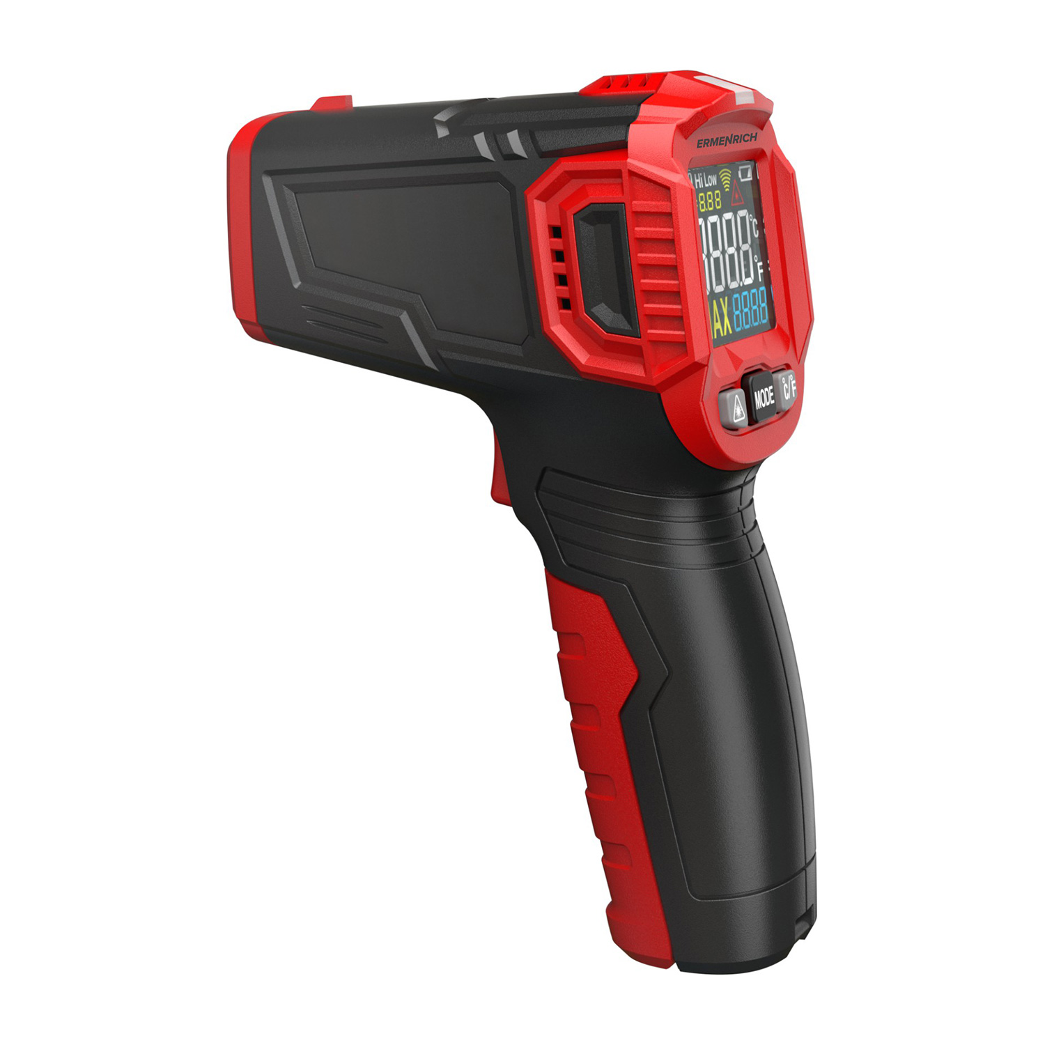 Ermenrich Seek FR40 infravörös hőmérő 82957 9 490 Ft / db [2 db 2%] [5 db 3%] [10 db 5%] Gyártó: ERMENRICH Cikkszám: S101_82957 Súly: 0,23 kg Átvétel: Ez a termék boltunkban személyesen is átvehető. Az Ermenrich Seek FR40 egy infravörös hőmérő (pirométer), mely érintésmentes hőmérsékletméréshez való. Tökéletes eszköz olyan körülmények között végzendő mérésekhez, ahol a fizikai érintkezés nem lehetséges vagy nem biztonságos. Infravörös sugárzás segítségével –50 és +550 °C között méri a hőmérsékletet. Reakcióideje kevesebb, mint 0,5 másodperc. A hőmérő több pontos lézermutatóval rendelkezik, amely lehetővé teszi, hogy pontosan az objektumra célozzon. Először tartsa lenyomva a „ravaszt”, hogy a készülék megkezdje a folyamatos mérést. A folyamat leállításához és a kapott értékek rögzítéséhez egyszerűen engedje el a gombot. Beállíthatja azokat a minimális és maximális értékeket, amelyek elérésekor a készülék fényjelet ad. Kiválaszthatja azt is, hogy az eredmény Celsius vagy Fahrenheit fokban jelenjen meg. A hőmérő 2 db (külön megvásárolható) AAA elemmel működik. Az energiatakarékos használat érdekében az automatikus kikapcsolási funkció 30 másodpercnyi inaktivitás után működésbe lép. A töltöttségi szintjelző segít, hogy időben kicserélje a tápellátást. Főbb jellemzők: Érintésmentes hőmérsékletmérés –50 és +550 °C között Színes képernyő, kimerevítés funkció és több pontos lézer A minimális és maximális hőmérsékleti értékek beállítása, fényjelzés Szabványos elemekkel működik, automatikus kikapcsolás MárkaErmenrichSzavatosság5 évEAN5905555017365A csomag méretei (HxSzxM):19x6x12 cmSzállítási súly0.225 kgTípusinfravörös hőmérőBeépített funkciókhőmérő=== Elválasztójel ===Hőmérő (hőmérséklet)Mértékegységek°C, °FMérési tartomány–50 °C és +550 °C közöttPontosság±3 °C a –50 és 0 °C közötti tartományban ±(2,0%+2 °C) a 0 és +550 °C közötti tartománybanPontosság±(2,0%+2 °C) a 0 és +550 °C közötti tartományban, ±3 °C a –50 és 0 °C közötti tartománybanReakcióidő<0,5Optikai felbontás (D:S)12:1Emisszivitás0,10–1Spektrális válasz, μm8 — 14=== Elválasztójel ===Általános műszaki jellemzőkMin./max. riasztásyesTartás funkcióyesHatárérték funkció (Min/Max)+ (csak maximumok)LézerigenLézerfény-vezérlésyesKépernyőLED, színesKijelző háttérfényyesLemerülőben lévő elem jelzőlámpájayesTápellátás2 db AAA elem (a készlet nem tartalmazza)Automatikus kikapcsolásyesBiztonsági szabványokEN60825-1, EN61326-1 Mennyiség db Nem rendelhető