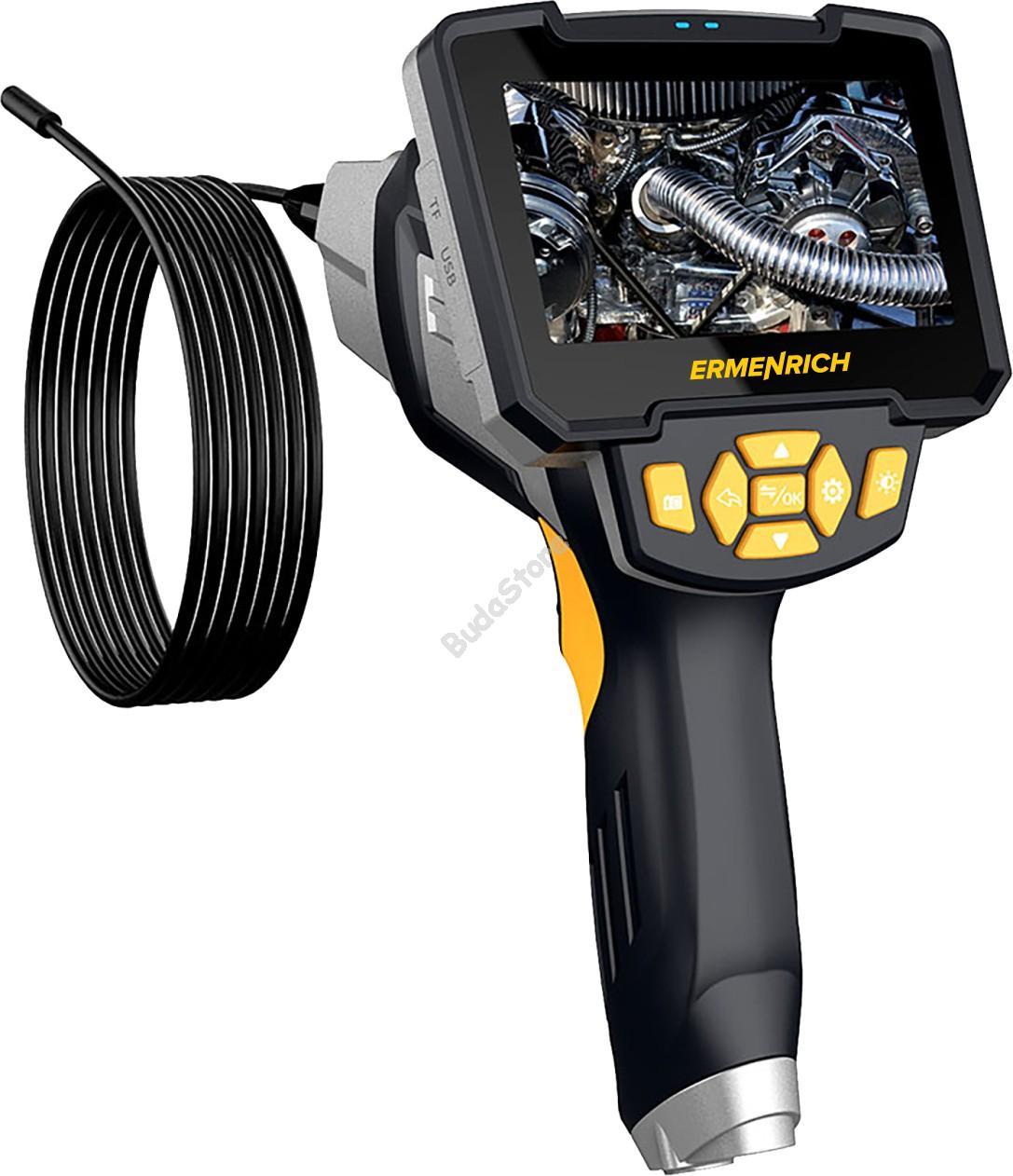 Ermenrich Seek VE60 ipari endoszkóp 82531 59 840 Ft / db [2 db 2%] [5 db 3%] [10 db 5%] Gyártó: ERMENRICH Cikkszám: S101_82531 Súly: 0,70 kg Átvétel: Ez a termék boltunkban személyesen is átvehető. A két HD kamerával rendelkező Ermenrich Seek VE60 ipari endoszkóp (boroszkóp) lehetővé teszi a nehezen hozzáférhető területek vizsgálatát, valamint fényképek és videofelvételek rögzítését. Jó láthatóságot biztosít: Az elülső kamera és az oldalsó kamera is 70°-os látószöggel rendelkezik. Mindkét kamera LED-világítással van felszerelve. A boroszkóp nélkülözhetetlen eszköz a nehezen hozzáférhető helyek vizsgálatához, azaz a lefolyók és vízvezetékek állapotának ellenőrzéséhez, valamint a háztartási készülékek és az autómotor állapotának felméréséhez. Alkalmas falszerkezetek, konténerrakományok stb. vizsgálatára is. A kamerával ellátott flexibilis kábelvezető 1 méter hosszú, és elég rugalmas ahhoz, hogy még a nehezen hozzáférhető helyeket is elérje. A lencsék és a LED-ek rövid ideig vízállóak (IP67). A képek a színes LCD-képernyőn jelennek meg. A fotó- és videóadatok tárolása (külön megvásárolható) memóriakártyán történik. A készülék 64 GB-ig támogatja a szabványos micro-SD-kártyákat. A kamera 720p felbontású képeket, illetve 480p felbontású videót képes rögzíteni. A boroszkóp újratölthető akkumulátorról működik, amely DC (egyenáramú) adapterrel tölthető. Egy töltés 3 óra üzemidőhöz elegendő. Az adaptert külön kell megvásárolni. Főbb jellemzők: Jó láthatóságot biztosító, elülső és oldalsó HD kamerával ellátott boroszkóp Beépített LED-lámpák mindkét kameránál a szűk, sötét területek vizsgálatához A lencsék és a LED-ek rövid ideig vízállóak (IP67) Az adatok tárolása memóriakártyán történik újratölthető akkumulátorról működik Folyamatos üzemidő egyetlen feltöltéssel: 3 óra A készlet tartalma: Videoendoszkóp Micro-USB-kábel Kampó Mágnes Védősapka Felhasználói kézikönyv és garanciajegy MárkaErmenrichSzavatosság5 évEAN5905555021522A csomag méretei (HxSzxM):27x27x7 cmSzállítási súly0.7 kgTípusipari KépernyőLED, színesKijelző átmérője, hüvelyk4.3Kijelző felbontása, px1920x1080Kamerák száma1 db (elülső), 1 db (oldalsó)Kamera látószöge, °70° (elülső), 70° (oldalsó)Kamera átmérője, mm4 (oldalsó), 8 (elülső)Kamera-világítás8 LEDExtra oldalsó kamera világításyesFókusztávolság, mm40 — 5000Beépített felvevőegységyesKépformátum*.jpgKépfelbontás, px1280x720 (720p)Videóformátum*.aviVideó felbontása, px640x480 (480p)VízállóIP67, teljes porvédelem, rövid távú vízállóság (lencsék és LED-ek)Memóriakártya10. osztályú micro-SD kártya, max. 64 GB (külön megvásárolható)Kábelhossz, m1Kábelhossz, m1Üzemi hőmérséklet-tartomány, °C-10 — 75Tápellátás1 A DC adapterrel (külön megvásárolható), 1700 mA∙h Li-ion akkumulátor, 5 VAkkumulátor üzemideje (óra)3 Mennyiség db Nem rendelhető