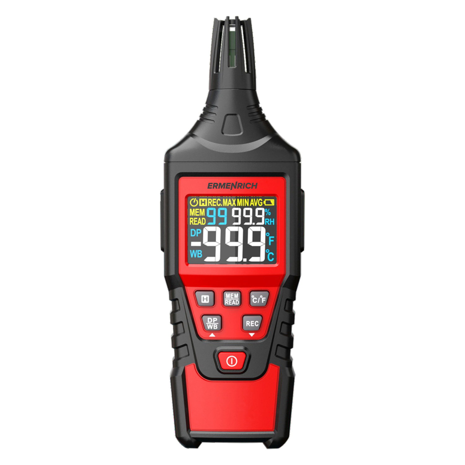 Ermenrich Wett TU30 hőmérséklet- és páratartalom-mérő készülék 82960 18 990 Ft / db [2 db 2%] [5 db 3%] [10 db 5%] Gyártó: ERMENRICH Cikkszám: S101_82960 Súly: 0,28 kg Átvétel: Ez a termék boltunkban személyesen is átvehető. Az Ermenrich Wett TU30 hőmérséklet- és páratartalom-mérő készülék a páratartalom és a hőmérséklet mérésére szolgál kültéren, illetve irodákban, lakó-, ipari vagy raktárhelyiségekben. Kompakt kialakítása, színes képernyője és elemes működtetése lehetővé teszi, hogy üzemi mérésekhez és a gyártási folyamatok vezérléséhez használja a hőmérséklet- és páratartalom-mérő készüléket. A hőmérő –20 °C és +60 °C között méri a hőmérsékletet. A páratartalom-mérő 0% és 100% között méri a páratartalmat. A készülék harmatpontot is mér. Külön funkciókkal rendelkezik az adatok kimerevítéséhez, valamint a hőmérsékleti és páratartalmi határértékek megjegyzéséhez. A tápellátást szabványos (külön megvásárolandó) AAA elemek biztosítják. Az alacsony töltésszint-jelző kimutatja, hogy mikor kell azokat kicserélni, az automatikus kikapcsolás funkció pedig segít az elemek energiájának megtakarításában. Főbb jellemzők: A környezeti hőmérséklet és páratartalom gyors mérése Kompakt kialakítás színes képernyővel Határértékek rögzítése, a mért értékek kimerevítése AAA elemekkel történő működtetés, automatikus kikapcsolás funkció, alacsony töltöttségi szint jelzése A készlet tartalma: Hőmérséklet- és páratartalom-mérő készülék Tok Felhasználói kézikönyv és garanciajegy MárkaErmenrichSzavatosság5 évEAN5905555017396A csomag méretei (HxSzxM):22x12x5 cmSzállítási súly0.28 kgTípushőmérséklet- és páratartalom-mérő készülékBeépített funkciókhigrométer, hőmérő=== Elválasztójel ===Higrométer (levegő páratartalma)Mértékegységek% (RH)Mérési tartomány0–100%Mérési felbontás0,1%Pontosság±3% a 20% és 80% közötti tartományban ±4% más tartományokbanPontosság±3% a 20% és 80% közötti tartományban ±4% más tartományokban=== Elválasztójel ===Hőmérő (hőmérséklet)Mértékegységek°C, °FMérési tartomány–20 °C és +60 °C közöttNedves hőmérsékletmérési tartomány–20 °C és +60 °C közöttHarmatponti hőmérsékletmérési tartomány–50 °C és +60 °C közöttMérési felbontás0,1Pontosság±1 °C a 0 °C és 45 °C közötti tartományban ±1,5 °C más tartományokbanPontosság±1 °C a 0 °C és 45 °C közötti tartományban ±1,5 °C más tartományokban=== Elválasztójel ===Általános műszaki jellemzőkTartás funkcióyesHatárérték funkció (Min/Max)yesAdattárolásyesÁtl. méréseyesKépernyőszínesKijelző háttérfényyesLemerülőben lévő elem jelzőlámpájayesTápellátás3 db AAA elem (a készlet nem tartalmazza)Automatikus kikapcsolásyesBiztonsági szabványokEN61326-1 Mennyiség db Kosárba tesz