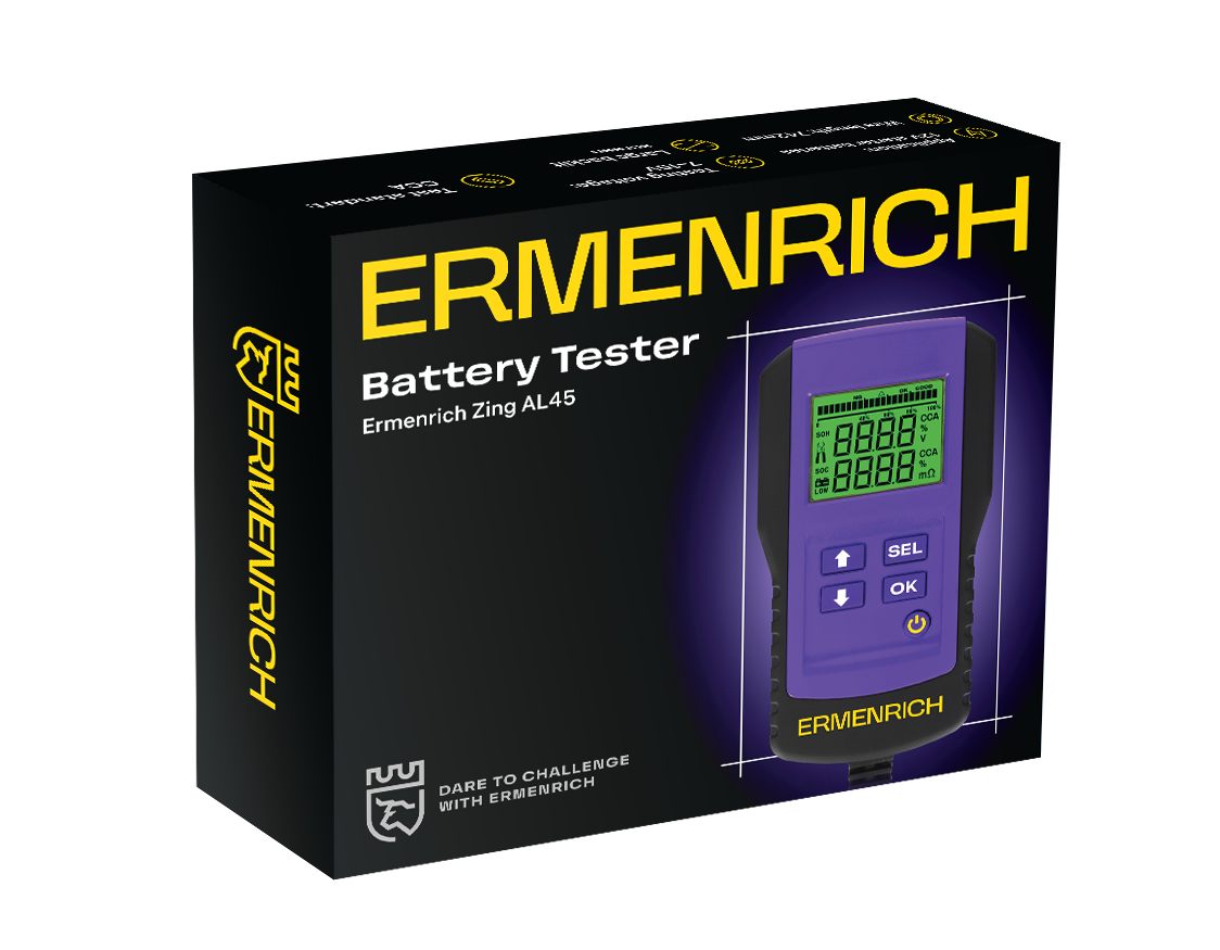 Ermenrich Zing AL45 akkumulátor-tesztelő 83822 18 990 Ft / db [2 db 2%] [5 db 3%] [10 db 5%] Gyártó: ERMENRICH Cikkszám: S101_83822 Súly: 0,34 kg Átvétel: Ez a termék boltunkban személyesen is átvehető. Az Ermenrich Zing AL45 akkumulátor-tesztelő egy intuitív eszköz, amellyel gyorsan ellenőrizheti az autóakkumulátor vagy a szünetmentes tápegység (UPS) állapotát. A tesztelő két terminállal csatlakozik az anódhoz és a katódhoz. A tesztelő töltése is így történik – nincs szükség más tápegységre. A tesztelő által leolvasott értékek a beépített képernyőn jelennek meg. A felső sáv az akkumulátor általános állapotát mutatja százalékban megadva. Ha az érték 40% és 60% között van, ideje elgondolkodni az akkumulátor cseréjén, a 40% alatti érték pedig az akkumulátor teljesítményének csökkenését jelzi. Minden 60% feletti érték jónak minősül. A képernyő a feszültséget, a belső ellenállást és a hidegindítási ampert (CCA) is mutatja. A szabályozó elemek alul találhatók meg. Főbb jellemzők: Kijelzi az akkumulátor általános állapotát százalékban megadva Méri a feszültséget, a belső ellenállást és a hidegindítási ampert (CCA) Töltés a vizsgált akkumulátoron keresztül (nincs szükség további tápegységre) MárkaErmenrichSzavatosság5 évEAN5905555021355A csomag méretei (HxSzxM):18x15x5 cmSzállítási súly0.34 kgÜzemi feszültségtartomány (DC), V7 — 15Mérési szabványokCCA: 100-1700Biztonsági szabványokEN 61326-1:2013Üzemi páratartalom-tartomány, %0 — 80Üzemi hőmérséklet-tartomány, °C0 — 50Tárolási hőmérséklet-tartomány (°C)−10 … +50Váznagy szilárdságú ABS-műanyag Mennyiség db Kosárba tesz