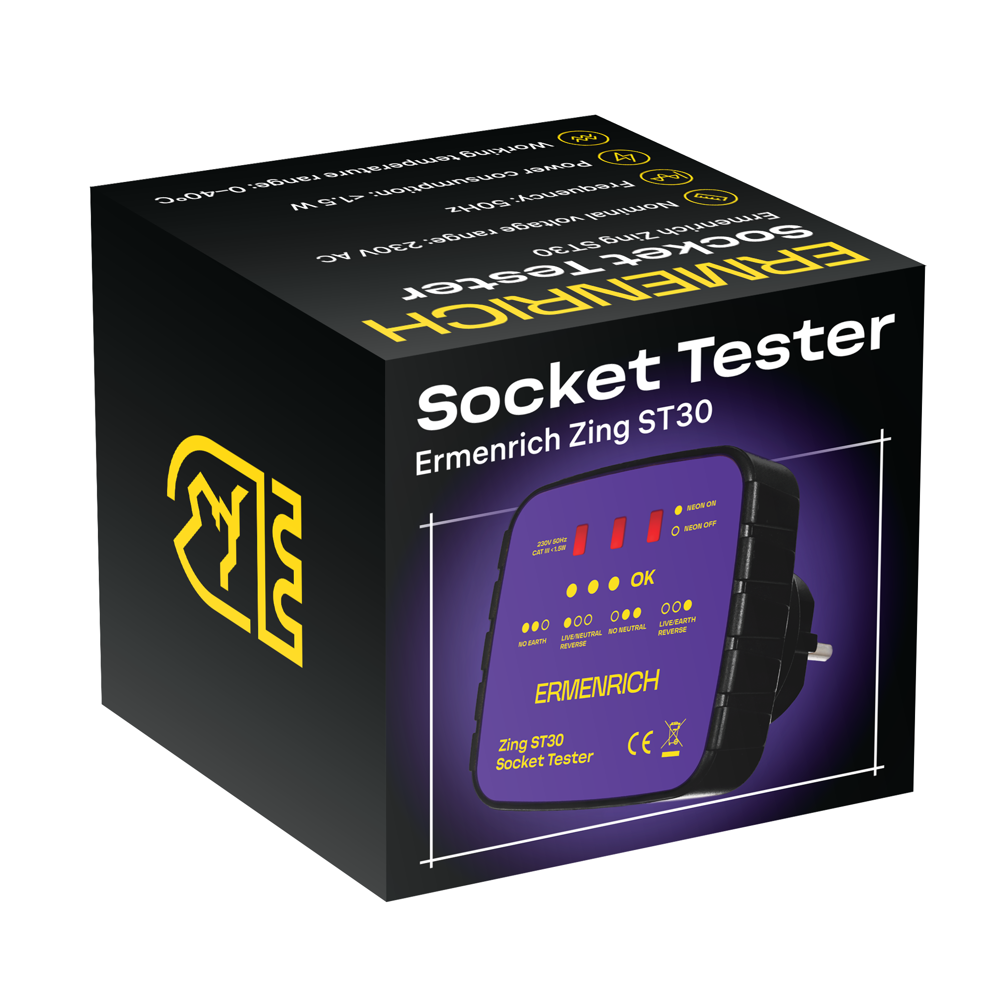 Ermenrich Zing ST30 aljzat-tesztelő 83818 4 740 Ft / db [2 db 2%] [5 db 3%] [10 db 5%] Gyártó: ERMENRICH Cikkszám: S101_83818 Súly: 0,12 kg Átvétel: Ez a termék boltunkban személyesen is átvehető. Az Ermenrich Zing ST30 aljzat-tesztelővel tesztelheti, hogy az összes aljzat megfelelően van-e bekötve, valamint ellenőrizheti a feszültséget. Dugja a tesztelőt közvetlenül az aljzatba, és a LED villogása jelzi a különböző elektromos hibákat: nincs föld/nincs nulla, fázis/nulla fordítva, ill. fázis/föld fordítva. Továbbá a tesztelő képernyőjén megjelenő, speciális színkód jelzi a helyes bekötési állapotot. Minden egyes kód funkciója fel van tüntetve az eszközön. Főbb jellemzők: 230 V AC Érzékeli, ha nincs föld/nincs nulla Villog, ha felcserélték a fázist és a nullát vagy a fázist és a földet Speciális fénykód a helyes bekötés jelzésére MárkaErmenrichSzavatosság5 évEAN5905555021317A csomag méretei (HxSzxM):9x9x8 cmSzállítási súly0.12 kgAljzathuzalozás CEE 7/3, 7/5 (európai aljzatok)Frekvenciatartomány, Hz50Üzemi feszültségtartomány (AC), V230Maximális feszültség, V250Túlfeszültség kategóriakat. III (300V)ZseblámpayesBiztonsági szabványokEN55014-1:2006+ A1:2009+A2:2011 EN61000-3-2:2014 EN61000-3-3:2013 EN55014-2:1997+A1:2001+A2:2008Üzemi páratartalom-tartomány, %0 — 75Üzemi hőmérséklet-tartomány, °C0 — 40Tárolási hőmérséklet-tartomány (°C)−10 … +50Váznagy szilárdságú ABS-műanyag Mennyiség db Nem rendelhető