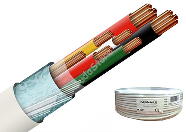 Erősített biztonságtechnikai kábel 2 x 0.5 + 4 x 0.22 réz 116702 23 310 Ft / tekercs [2 tekercs 2%] [5 tekercs 3%] [10 tekercs 5%] Gyártó: EGYÉB Cikkszám: S003_116702 Átvétel: Ez a termék boltunkban személyesen is átvehető. 2x0.5+4x0.22 eres,erősített biztonságtechnikai kábel,PVC köpeny,tömör árnyékolás,100m/tek. - 2+4 szigetelt, különböző színű, sodrott réz ér. - Vastag erek névleges érkeresztmetszete: 0.5mm2. - Vékony erek névleges érkeresztmetszete: 0.22mm2. - Tömör árnyékolás. - Alufólia belső borítás. - Fehér PVC külső köpeny. - 100méter / tekercs. Mennyiség tekercs Kosárba tesz