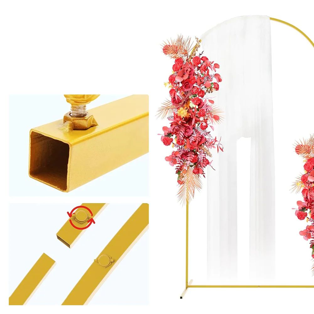 A boltív szerkezete erős és stabil, így biztonságosan felállítható bármilyen helyszínen. Könnyen összeszerelhető, ami megkönnyíti a dekoráció gyors felállítását, legyen szó szabadtéri esküvőről egy parkban vagy kertben, illetve beltéri rendezvényről. Az egyszerű összeszerelhetőség különösen hasznos, ha az esküvő napján minden részletnek gyorsan és gördülékenyen kell összeállnia.