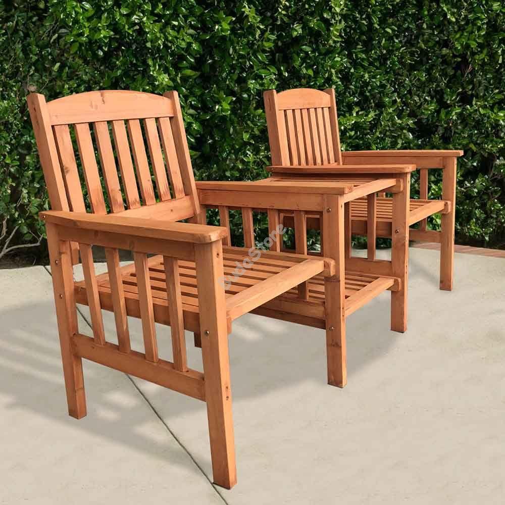 A fa 2 személyes kerti garnitúra igazán különleges kialakítással bír, a székek és a középen elhelyezett asztal ugyanis egymáshoz vannak rögzítve, ezáltal külön-külön a darabok nem mozdíthatók. Ezzel az érdekes kivitelezéssel a garnitúra biztosan egy új színt visz kertedbe, vagy uvdarodba. A középső asztalka 2 asztallappal rendelkezik, melyeken középen egy napernyőtartó lyuk is található, ezzel téve lehetővé a tökéletes nyári kikapcsolódást számodra.