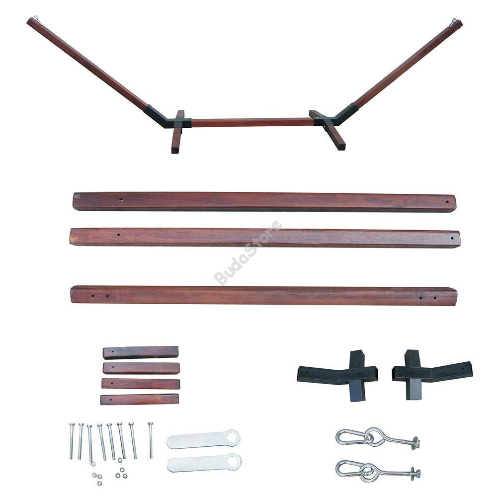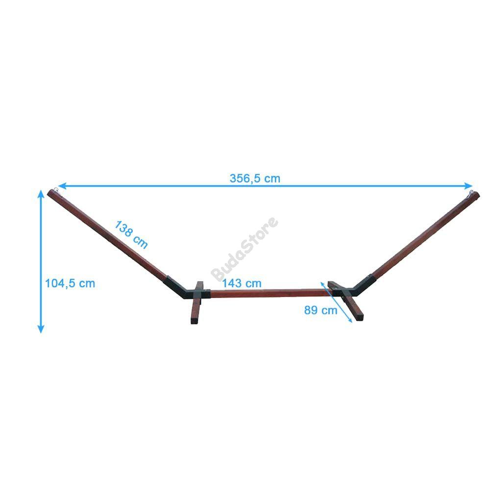Pihenj otthon a kertben, a szabadban vagy bárhol, ahol csak tetszik. A tartóállványt szinte bárhol összeszerelheted. Miután ez megvan, csak ráakasztod a függőágyad és már lazíthatsz is. Most már nem feltétel a kert, akár egy nagyobb szobában, vagy teraszon is felállíthatod. Fából készült így bármilyen környezetben jól mutat. A csomagban minden szükséges csavart és tartozékot megtalálsz, így összeszerelése nagyon egyszerű. Az állvány 2 végének távolsága 2 méretre állítható. A csomagban található kampókhoz könnyedén rögzítheted majd a függőágyat.