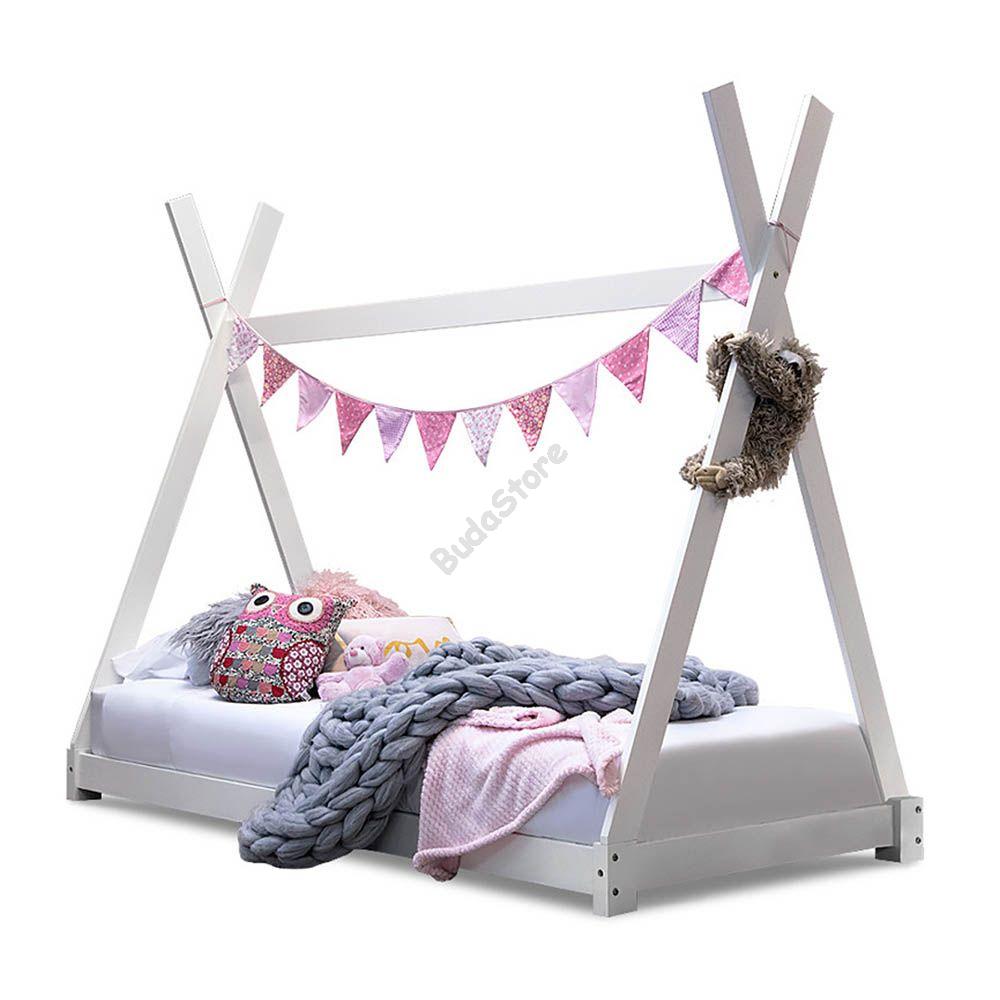 Fa gyerekágy keret 70x140 cm-es méretben, amiben biztosan otthon érzik majd magukat a gyerekek. Az ágy különleges formája egy sátorra emlékeztet, ami igazán hangulatossá teheti a kicsik hálószobáját. Az ágy natúr és fehér színben is megvásárolható, ezért könnyen  kombinálható más bútorokkal. Az ágykerethez tartozik egy kivehető ágyrács. Az anyaga tömör fa, strapabíró szerkezete miatt biztonságosan használható.