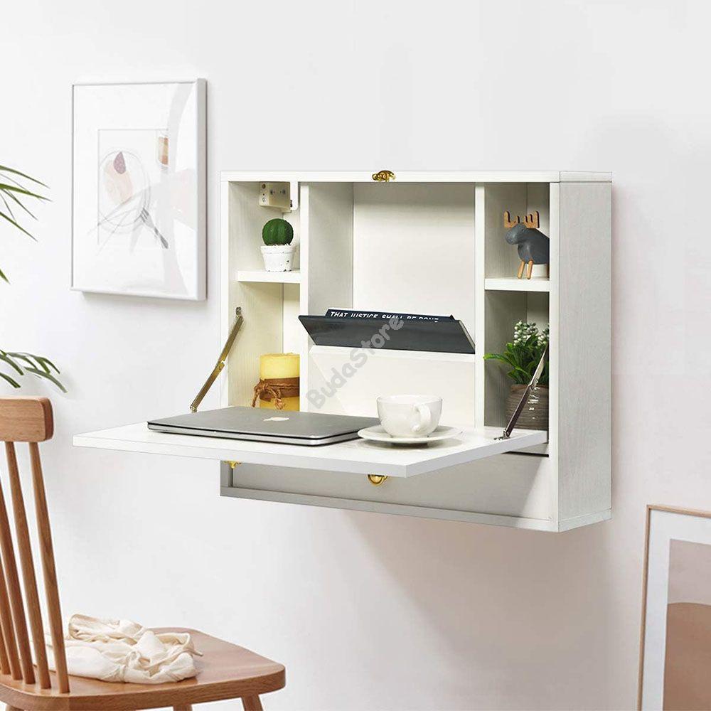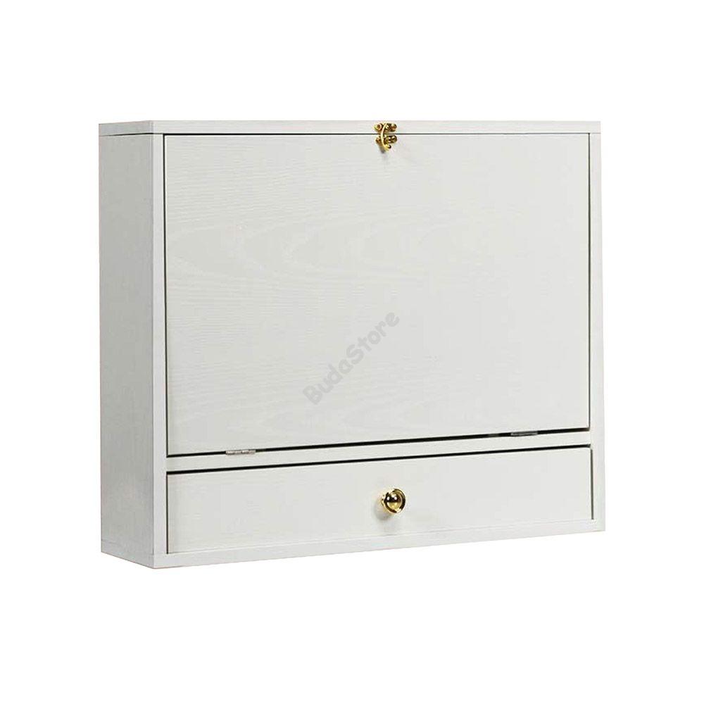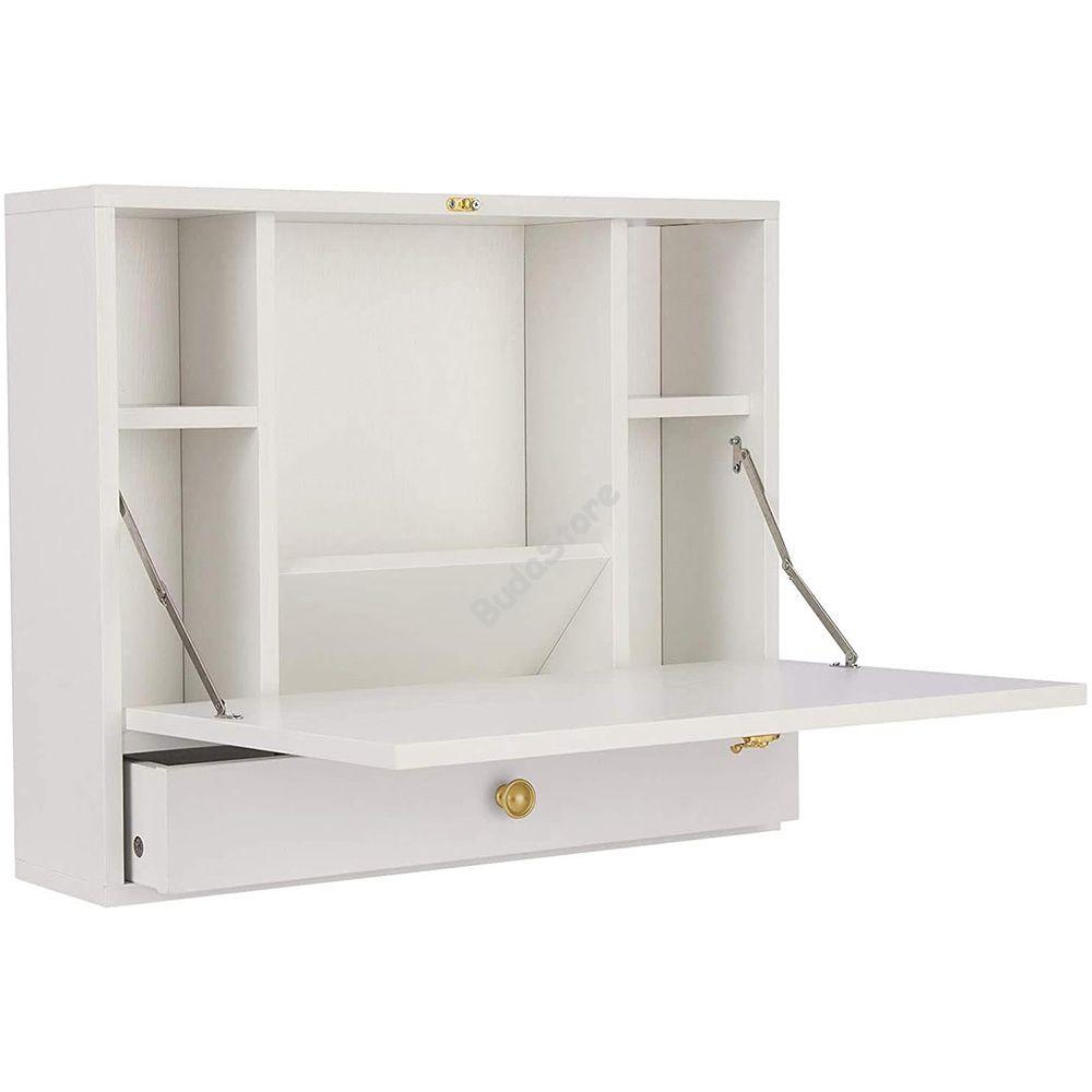 Szeretnél otthonra egy helyet, melyen tárolhatod a laptopot, de mégis helytakarékos? Akkor a falra szerelhető laptoptartónk jelenti a megoldást! Stabilan a falra rögzítheted és amikor nem használod az ajtaját fel tudod hajtani. Lehajtott állapotban 6 különálló polcra helyezheted kiegészítőid, irodai holmid vagy dísztárgyaid. A szekrény alján található kihúzható fiókos polc, ami további tároló helyet biztosít és szükség szerint a billentyűzetet is elhelyezheted benne. Modern, letisztult fehér színével minden stílusú lakásba vagy irodába beilleszthető.