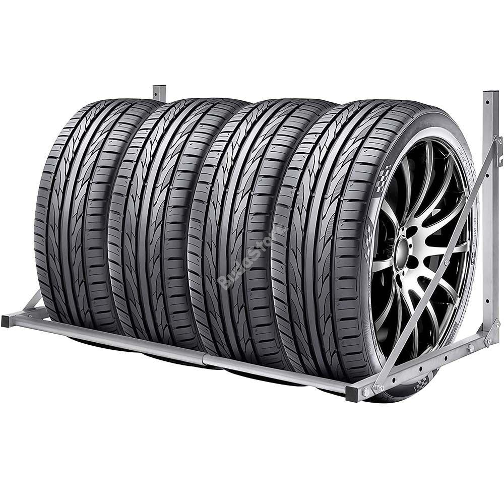 Tárold megfelelően gumiabroncsaid szezonváltások között falra szerelhető gumiabroncs tartónkkal. Használhatod otthon a garázsban de jó szolgálatot tesz autószerelő műhelyben is. Mivel könnyedén a falhoz rögzítheted, így nem kell többé a feltornyosult autógumikat kerülgetned és rendben tarthatod a helyiséget is. A tartó maximális terhelhetősége 136 kg. Masszív vázszerkezetének köszönhetően biztonságos tároló megoldást nyújt. 45 fokos szögben dönthető, így szükség szerint fel is hajthatod.