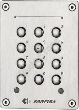 FARFISA FC32P Kódzár 125220 37 130 Ft / db [2 db 2%] [5 db 3%] [10 db 5%] Gyártó: FARISA Cikkszám: S003_125220 Súly: 0,50 kg Átvétel: Ez a termék boltunkban személyesen is átvehető. Vandálbiztos fém, süllyeszthető, 2 relé kimenet, 2x4 db 2-6 digites kód, 12VAC/VDC. - Mikrovezérlős elektronika. - Vandálbiztos, süllyesztett kivitel. - Acél előlap és fém gombok. - 12 gombos kezelőfelület. - 2 LED-es állapotjelzés. - Programozás és kezelés a gombokon keresztül. - 2 relé kimenet. - NO/NC kontaktusú relé kimenetek. - Közvetlen ajtónyitó nyomógomb bemenet (NO), az 1. relé működtetésére. - 2. relé kimenet közvetlen működtetés az A gombbal. - Relé kimenetenként 4, programozható kód. - 2-6 számjegyű kódok. - Programozható relé működési idő (0-99 mp). - 1. relé működhet bistabil módban is. - Tápfeszültség: 12 VAC / VDC (+/-10%). - Áramfelvétel: maximum 100 mA. - Működési hőmérséklet: 0°C – 40°C. - Működési páratartalom: maximum 85%. Mennyiség db Kosárba tesz