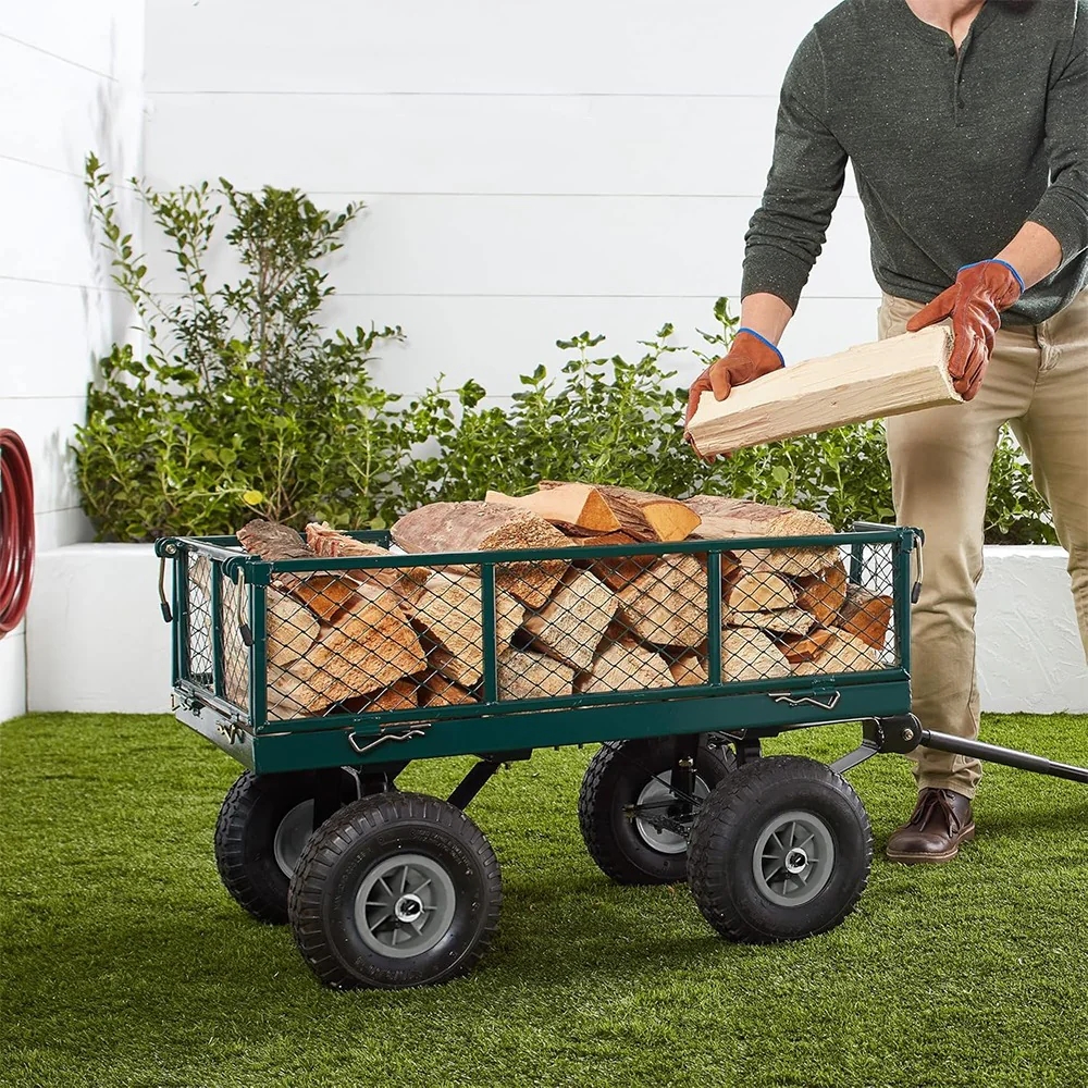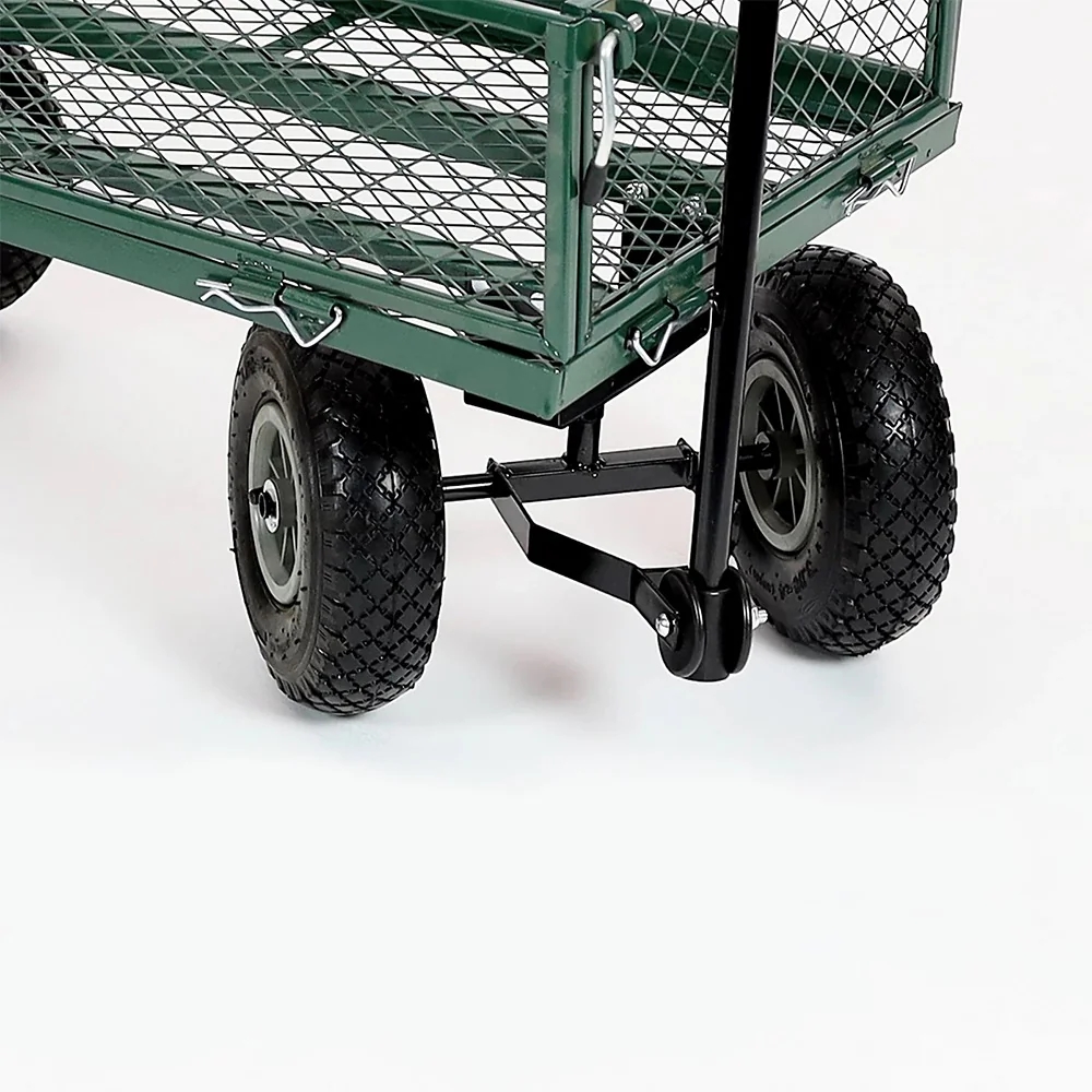 Ez a fém kerti kézikocsi ideális társ kerti munkákhoz, tűzifa, föld vagy egyéb terhek szállítására. A rácsos kialakítás biztosítja a stabil szállítást, a lenyitható oldalfalak pedig megkönnyítik a be- és kipakolást nehezebb tárgyaknál is.