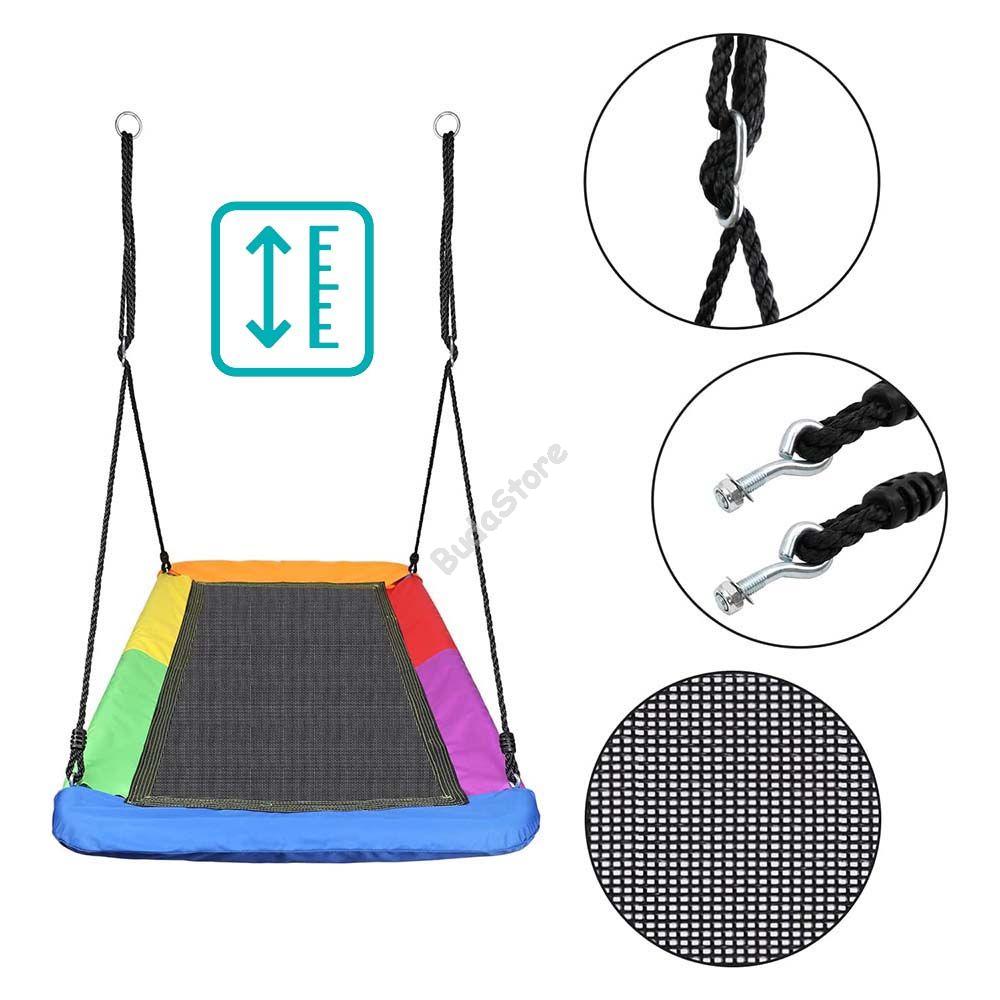 A fészekhintát felszerelheted kertedben, de kellően nagy helyiség esetén beltéren egyaránt használható. 150 kg-os teherbírásának köszönhetően kellő körültekintés mellett több gyermek is használhatja, vagy akár Te magad is szórakozhatsz benne. Könnyen összeszerelhető és egyben stabil fém vázzal került kialakításra. A köteleket két ponton S-kampó segítségével lehet rögzíteni és a szükséges magasságra állítani.