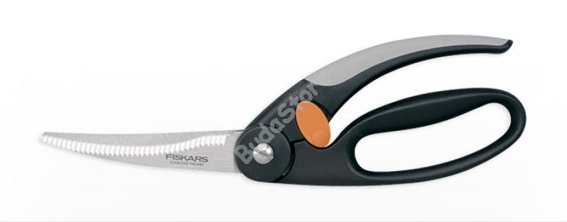 FISKARS Functional Form baromfi olló 25 cm 13 280 Ft / db [2 db 2%] [5 db 3%] [10 db 5%] Gyártó: FISKARS Cikkszám: S054_1003033 Vonalkód (EAN13): 6411501997586 Súly: 0,20 kg FISKARS Functional Form baromfi olló 25 cm Baromfi és vadhúsbontó olló. Az íves pengekiképzés csont vágására is alkalmassá teszi. Jobb és balkezesek által egyaránt használható. A kengyel formájú Softgrip nyél kényelmes fogású, a biztonsági zár hüvelykujjal nyitható. A termékcsalád a kiváló minőségű, nikkelmentes acélból készült pengéjű és ergonomikus nyélkialakítású ollók széles választékát kínálja. A markolat nagy felületet biztosít az ujjaknak a nyomáshoz, így az eszköz a kifejtett erőt egyenletesen osztja el, ezzel az olló használata kényelmes és nem fárasztó. Hossz: 25 cm Súly: 218 gramm Penge anyaga: Svéd Sandvik acél Acél keménysége: HRC 57 Tisztítás: Mosogatógépben tisztítható Márka: Fiskars Mennyiség db Kosárba tesz