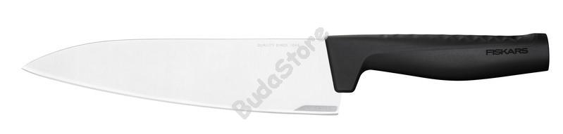 Fiskars Nagy méretű szakácskés - 1051747 19 690 Ft / db [2 db 2%] [5 db 3%] [10 db 5%] Gyártó: FISKARS Cikkszám: S052_1051747 Vonalkód (EAN13): 6424002011002 Súly: 0,12 kg Nagyméretű kés, széles és erős pengével. Húsok vágására, zöldségek és fűszerek aprítására egyaránt kiváló. A vastag rozsdamentes acélból kovácsolt penge a forradalmi LZR-EDGE technológiával készült, ami biztosítja, hogy akár négyszer olyan hosszú ideig is éles maradjon, mint a hagyományos kések. A fogantyú ergonómiai kialakítása kényelmes és biztos fogást tesz lehetővé, mosogatógépben mosható. Csomagolása kartonhulladékként újrahasznosítható. Mennyiség db Kosárba tesz