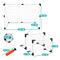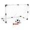 A szett a focikapu elemek mellett tartalmaz 1 db nagy hálót, 2 db kis méretű hálót, 1 db labdát és 1 db pumpát is.