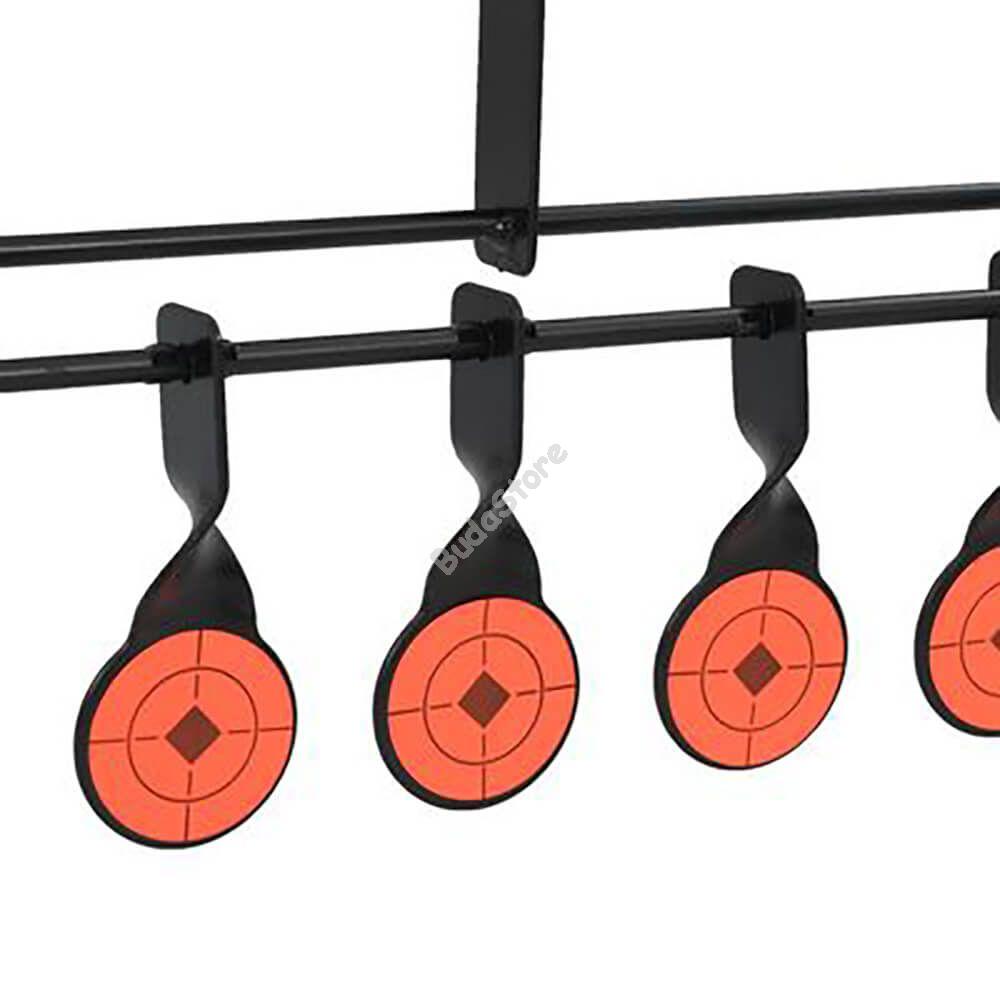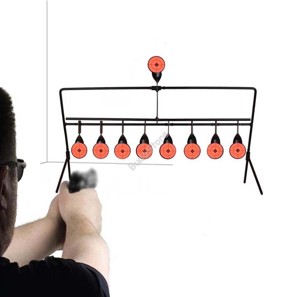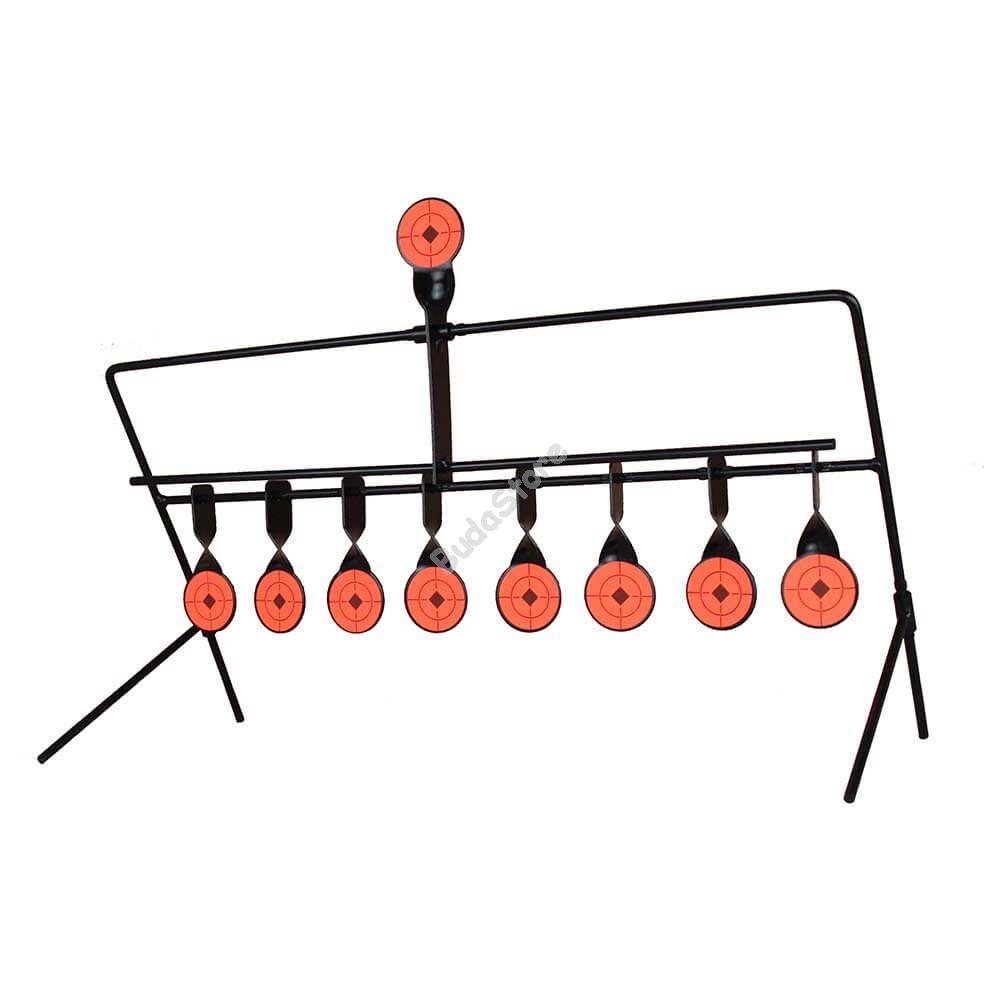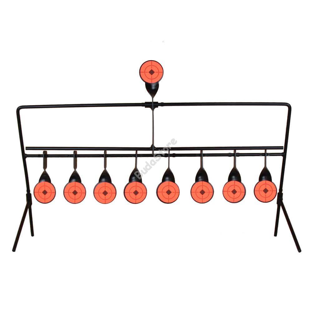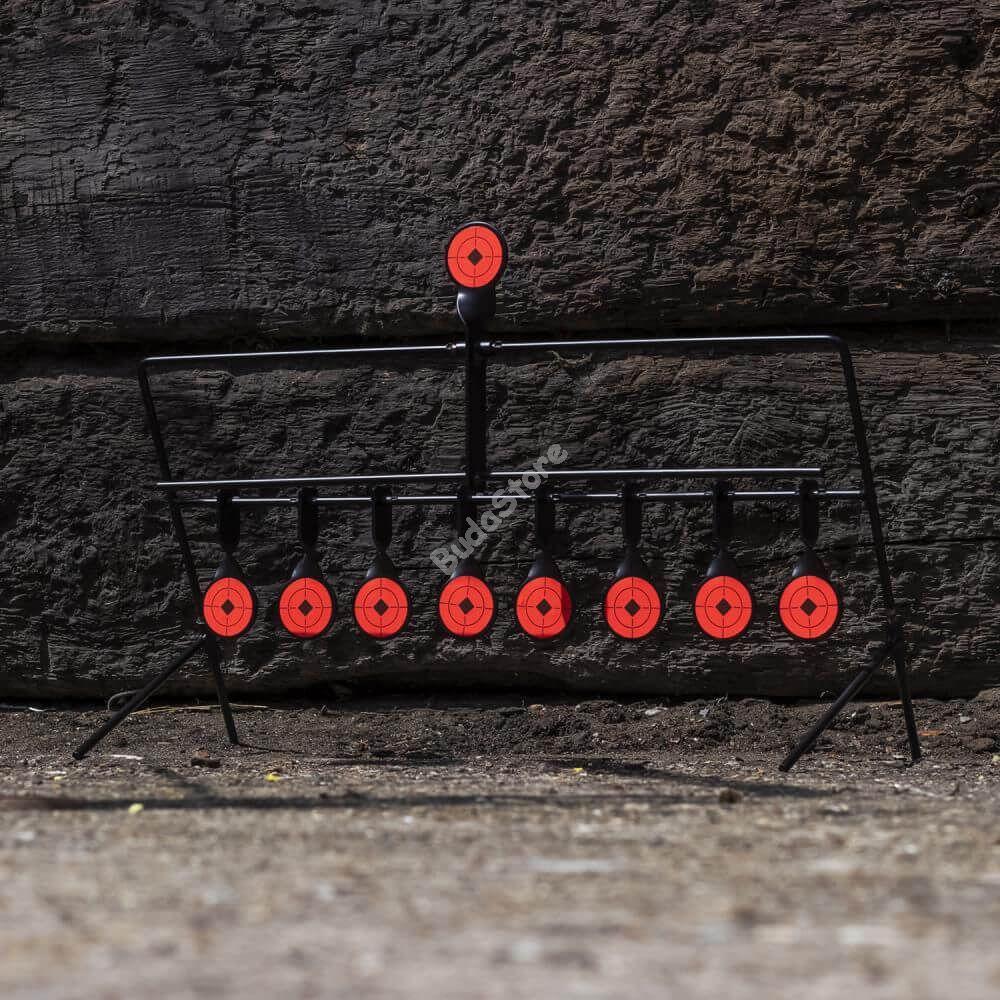 A 8+1 célponttal rendelkező céltábla nagyszerű segítség a lövéskészség fejlesztésére, és a pontosság gyakorlására. Első körben az alsó 8 célpontot kell eltalálni, ezután a felsőt, majd a tábla automatikusan visszaáll eredeti pozíciójába, így nem szükséges minden kör után újrarendezni a célpontokat. Méretének és elforgatható lábainak köszönhetően rendkívül könnyen hordozható, és szinte bárhol kényelmesen elhelyezhető.Tárolása nagyon egyszerű, és helytakarékos.