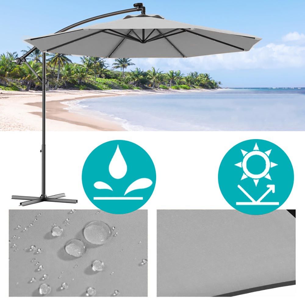A függő napernyő egy igazán praktikus és esztétikus kiegészítő kertedbe, teraszodra vagy erkélyedre, amely nemcsak kellemes árnyékot biztosít, hanem mediterrán hangulatot is varázsol a kültéri környezetbe. Stabil fém vázának és masszív szerkezetének köszönhetően erős tartást garantál, miközben UV-védett poliészter ernyője megóv a nap káros sugaraitól. Az állítható dőlésszögnek köszönhetően mindig az optimális árnyékot nyújtja, így bármely napszakban kényelmesen pihenhetsz alatta. Könnyedén kinyitható és összecsukható a kézi hajtókaros mechanikával, így használata rendkívül egyszerű és kényelmes.