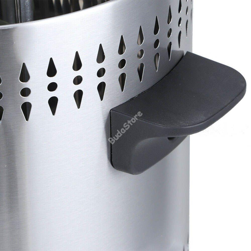 A függőleges grill segítségével könnyedén készíthetsz bárhol grillezett hal, zöldség és hús ételeket. 12 db rozsdamentes acél nyársa 360°-ban forog körbe a tökéletes végeredmény elérése érdekében. Tökéletes eszköz étterembe, bisztróba vagy akár otthonra, de egy kempingezés alkalmával is jó választás. Mély zsiradékgyűjtő tálcájának köszönhetően tisztítása rendkívül egyszerű.