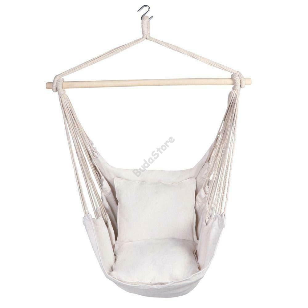 Függőszékünkben kipihenheted a hét fáradalmait akár egy finom itallal, vagy egy szórakoztató könyvvel a kezedben. Beltéren és kültéren is használhatod, csak egy ideális helyet kell találnod ahova felakaszthatod egy kampó vagy kötél segítségével (nem a csomag része). A két puha párnának köszönhetően még kényelmesebb. Felnőttek és gyermekek egyaránt imádni fogják.