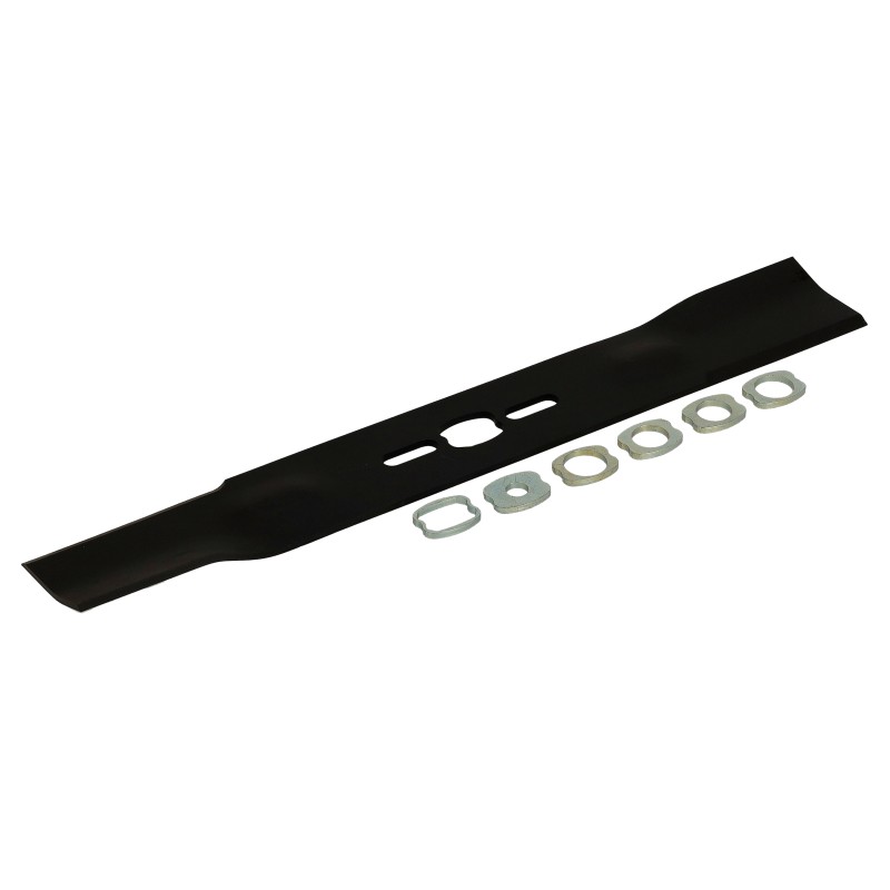 Univerzális, egyenes fűnyírókés, 5 darab különböző méretű szűkítő betétgyűrűvel.