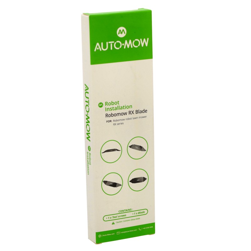 Eredeti Auto-Mow vágókés garnitúra Robomow RX robotfűnyírókhoz. A kés rozsdamentes acél, egy speciális bevonattal, amely garantálja a hosszú élettartamot. Ez a kés csak a Robomow RX sorozatú robotfűnyírókkal kompatibilis.