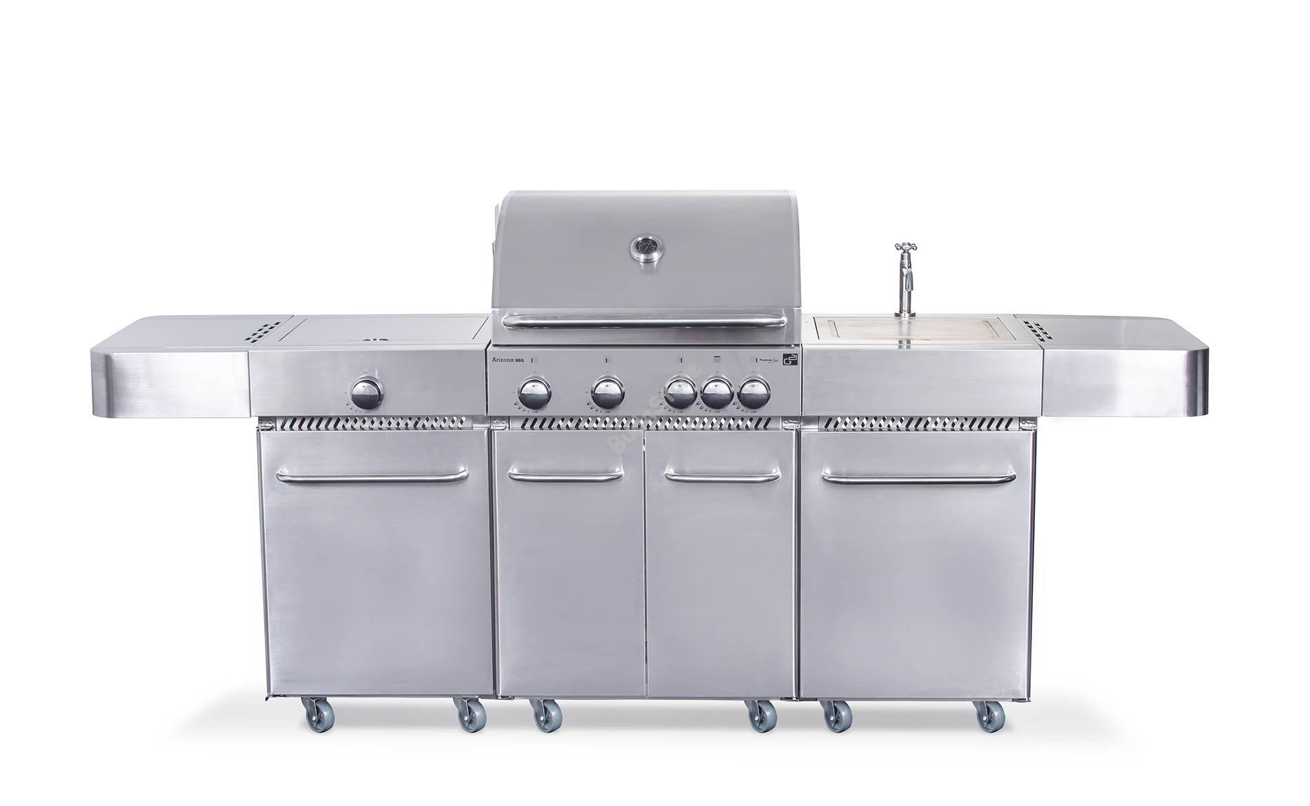 G21 Arizona BBQ Premium Line gázgrill 6 égőfej + ajándék nyomáscsökkentő 6390330 507 800 Ft / db [2 db 2%] [5 db 3%] [10 db 5%] Túlméretes áru, mindig számolunk szállítási költséget. Gyártó: G21 Cikkszám: S100_6390330 Vonalkód (EAN13): 8595627417840 Súly: 114,00 kg G21 Arizona BBQ Premium Line gázgrill 6 égőfej + ajándék nyomáscsökkentő 6390330 A grillpartik manapság nagyon népszerűek. A klasszikus fával vagy szénnel működő grillek mellett szintén keresettek a gázgrillek, mert nagyon modernek és használatuk roppant praktikus. Egyedülálló a piacon! Kerti konyha A G21 Arizona BBQ Premium Line az egyetlen grill a piacon, amely akár kültéri konyhának is megfelel. Nem hiányozhat a Flame Tamer funkció sem. Grillezés és főzés a speciálisan kialakított égőknek köszönhetően Az öt fő égő közül az egyik kerámia, mely azonnal magasabb hőmérsékletet biztosít. A hatodik égő a grill oldalán van. Önállóan , tűzhelyként is használhatja a szabadban , akár palacsintát is készíthet a gyerekeknek rajta. A kerámiaégő előnyei A kerámiaégő kiegészíti a G21 BBQ Arizona grillsütő előnyeit. Annak köszönhetően , hogy képes a hőmérsékletet 250-300 ° C –ra felhevíteni, főzésre és grillezésre is egyaránt kitűnő. Az égő helyzete garantálja az ételek egészséges elkészítését. A kerámia égőn finom steak vagy egész csirkét is grillezhet. A G21 Arizona Premium Line gázgrill további előnyei Az előnyök listája még mindig nem ért véget. Egy konyhából természetesen a mosogató sem hiányozhat, így a G21 Arizona Premium Line grillből sem. A beépített mosogató egy vízcsővel van ellátva, mely a kerti tömlőre csatlakozik. Az edények elöblitése után a mosogatót egy fa vágódeszkával takarhatja le, így nagyobb munkafelületet kap a finomságok elkészítiéséhez. A égők és a mosogató alatt beépített rekeszek talahatók, melyek ajtóval vannak felszerelve, hogy megvédjék a benne tárolt dolgokat az időjárás szeszélyeitől és a portól. Flame Tamer rendszer Közvetlenül az égők felett egy fém profil van, ami megakadályozza a zsír lefolyását a lángokba. Ugyanakkor megakadályozza, hogy a rács csak közvetlenül az égő felett melegedjen át, így egyenletes sütést biztosít az egész rács felületén. A keletkezett zsír pedig lefolyik a grill oldalán az aljában elhelyezett gyűjtőtartályba. Meghosszabbított garancia 2+2 év A termék minőségét 4 évig garantáljuk. A + 2 év garanciális időszakért kérjük regisztráljon a http://g21-warranty.com oldalon. Használja ki ezt a lehetőséget és regisztráljon egyből vásárlás után. Grillezési felület : 3 225 cm2 (63 x 49 cm) Égők: 6 x 4kW (4X fő,1x oldalt, 1x hátsó kerámia) Anyag: rozsdamentes acél Az öntöttvas rács méretei : 32 x 49 cm Az öntöttva lemez méreti 32 x 42 cm A grill méreti : 252 x 120 x 62 cm A gill súlya : 114 kg 2 drb 37 x 57 cm –es polc Ajándék nyomascsökkentő Nyárstű motorral Mosogató 44 x 38 cm Rozsdamentes acél csaptelep Fa vágólap Oldalsó égő Hátsó kerámiaégő 3 x tárolóhely ajtókkal A csomag méretei: A grillt 3 dobozban szállítjuk 1.csomag : 78 x 74x 64,5 cm, 67 kg 2.csomag : 74 x 57 x 43 cm, 31 kg 3.csomag : 74 x 57 x 43 cm, 29 kg A csomag tartalma: G21 Arizona BBQ Premium Line gázgrill Grilltű motorral Nyomáscsökkentő Mennyiség db Kosárba tesz