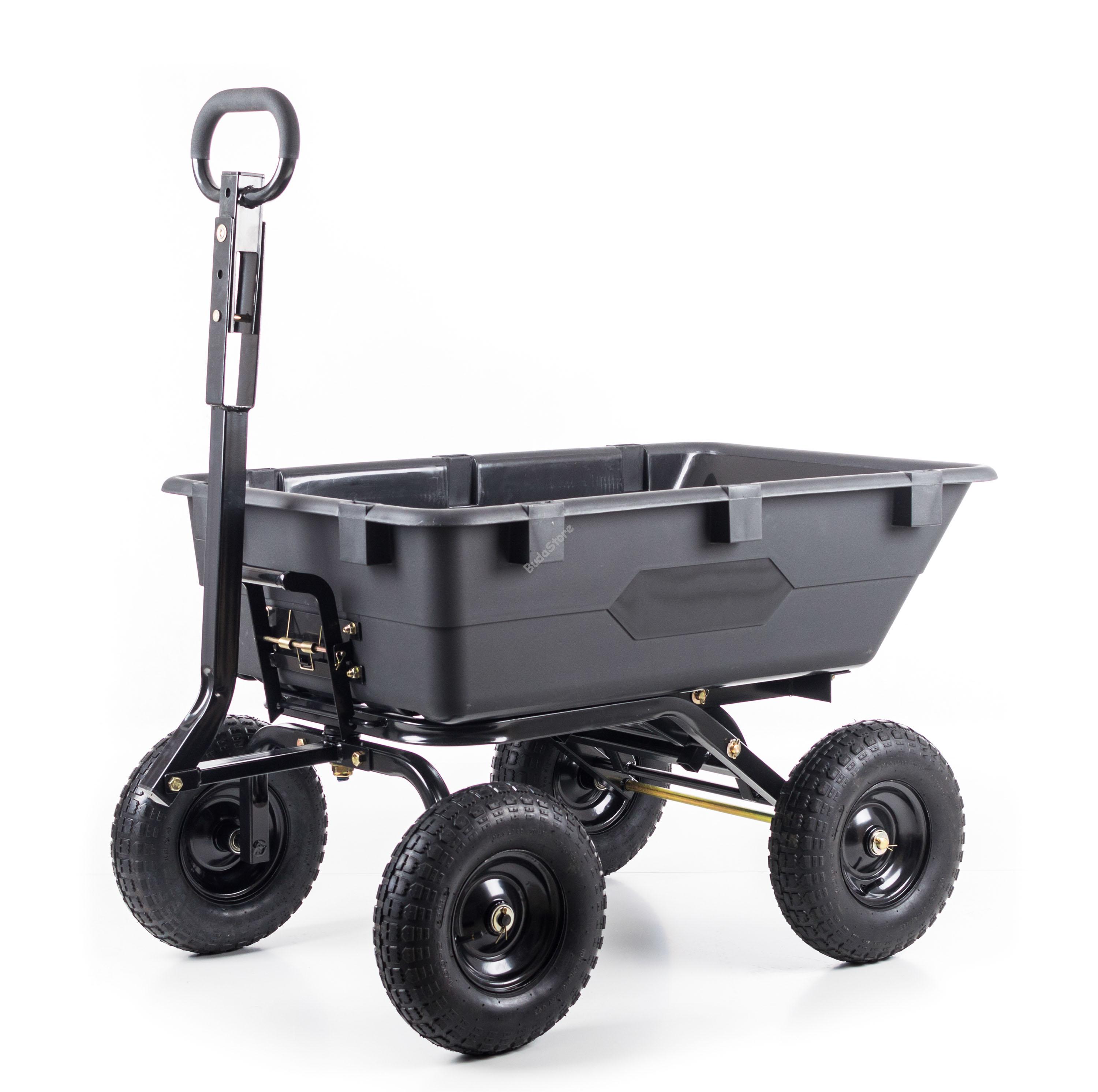 G21 GA 120 kerti kocsi 6390216 92 790 Ft / db [2 db 2%] [5 db 3%] [10 db 5%] Gyártó: G21 Cikkszám: S100_6390216 Vonalkód (EAN13): 8595627419431 Súly: 32,00 kg G21 GA 120 kerti kocsi 6390216 A G21 GA 120 kerti kocsi praktikus billenthető fogantyúval és 120 l-es teknővel rendelkezik, melynek teherbírása 600 kg. A két tengelyen 4 darab felfújható kereket helyeztünk el. A kerti kocsi nagyon könnyen kezelhető és mozgatható. Sokoldalú felhasználhatóság Szerezze be ezt a praktikus kiegészítőt a kertjébe, mely segítségével a nehezebb dolgok is könnyen szállíthatóak lesznek. Ez a kerti kocsi nem csak kerti munkákhoz alkalmas, hanem akár építkezéseken is használható, hasznos segítséget nyújthat. Magas teherbíró képességének köszönhetően a cementes zsákok, szerszámok és egyéb anyagok is könnyen mozgathatóak. Kerti traktorhoz is rögzíthető A kemény, ellenálló műanyagból készült teknő alkalmas szilárd és folyékony halmazállapotú anyagok szállítására is. A praktikusan megtervezett billenő mechanizmus megkönnyíti a kirakodást. Ezen kívül a fogantyúval ellátott vezérlő rudat pillanatok alatt vonórúddá lehet alakítani, így a kerti kocsit akár kerti traktorhoz is rögzíheti. Összességében a G21 GA 120 kerti kocsi a nehéz kerti munkák nagy részét jelentősen megkönnyíti. Tulajdonságok Maximális teherbírás: 600 kg Teknő űrtartalma: 120 l Teknő méretei:63 x 28 x 93 cm Vezérlőkar hossza a fogantyúval: 86 cm Kerék átmérője: 13" (33,02) Felfújható kerék: Igen Szín: fekete Kerti kocsi súlya: 31,5 kg Kerti kocsi méretei (Sz x M x H): 69 x 67 x 118 cm Csomagolás súlya: 35 kg Csomagolás méretei (Sz x M x H): 66 x 31 x 103 cm Mennyiség db Kosárba tesz