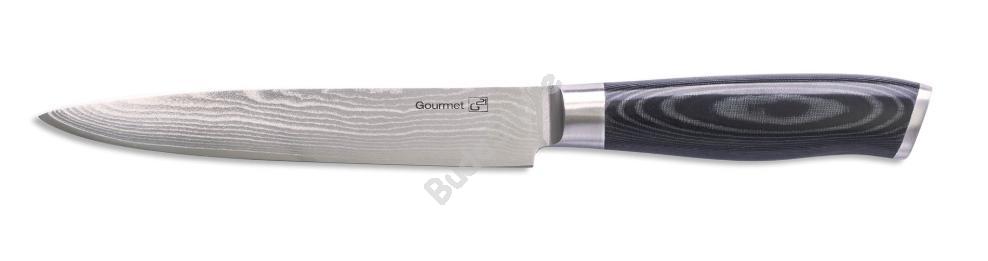 G21 Gourmet Damascus kés 18 cm NB-D1090-1 18 390 Ft / db [2 db 2%] [5 db 3%] [10 db 5%] Gyártó: G21 Cikkszám: S100_60022165 Vonalkód (EAN13): 8595627412128 Súly: 0,50 kg G21 Gourmet Damascus kés 18 cm NB-D1090-1 A termék leírása : Kés damaszkuszi acélból a konyhában? Igen, ez a tökéletes választás. A damaszkuszi acél erősebb és tartósabb a sima acéllal szemben, ráadásul az egyedi acél mintának köszönhetően luxus kiegészítőjévé válik a konyhájának. A minőséges G21 Gourmet Damascus 18 cm-es univerzális, japán damaszkuszi acélból készült kés tökéletesen fog szeletelni, vágni. Az átlagos főzésből szórakozás válik, melyet minden szakács és haspók értékelni fog. Minőséges anyag és kialakítás A G21 Gourmet Damascus kés pengéje minőséges 67 rétegű japán damaszkuszi VG-10 acélból készült, mely rendkívül ellenálló, stabil és hihetetlenül hosszú élettartammal rendelkezik. A rétegezett damaszkuszi acélt fegyverkészítéshez is használták. A damaszkuszi acél kettő, vagy több különféle acél egyvelege, mely egy egészet alkot. Ezek eredménye egy nagyon erős, ellenálló, ráadásul törésmentes anyag. Ezen anyagnak köszönhetően a G21 Gourmet Damascus kés éles, ellenálló, tartós és megfelelő karbantartás mellett több évtizedig is jó szolgálatot tehet. A kés markolata extra erős és ellenállót laminált anyagból készült, ún. Micrata. A micrata egy rétegelt szerkezetű, műgyantával kiöntött alapanyag, melyben nem üvegszál, hanem természetes alapanyag biztosítja a rétegeket. Így készült ez az erős,kemény markolat, mely nem enged az idő múlásának. A kés sima, egyenes, tiszta kialakítása minden konyha díszévé válik. Paraméterek: Penge hossza: 1á cm Anyag: japán 67 rétegű damaszkuszi acél, VG-10 Markolat anyaga: Micrata 2+2 év garancia (a www.g21-vitality.cz oldalon való regisztráció után) Csomagolás méretei: 9 x 37,5 x 3,5 cm Súly: 0,45 kg Mennyiség db Kosárba tesz