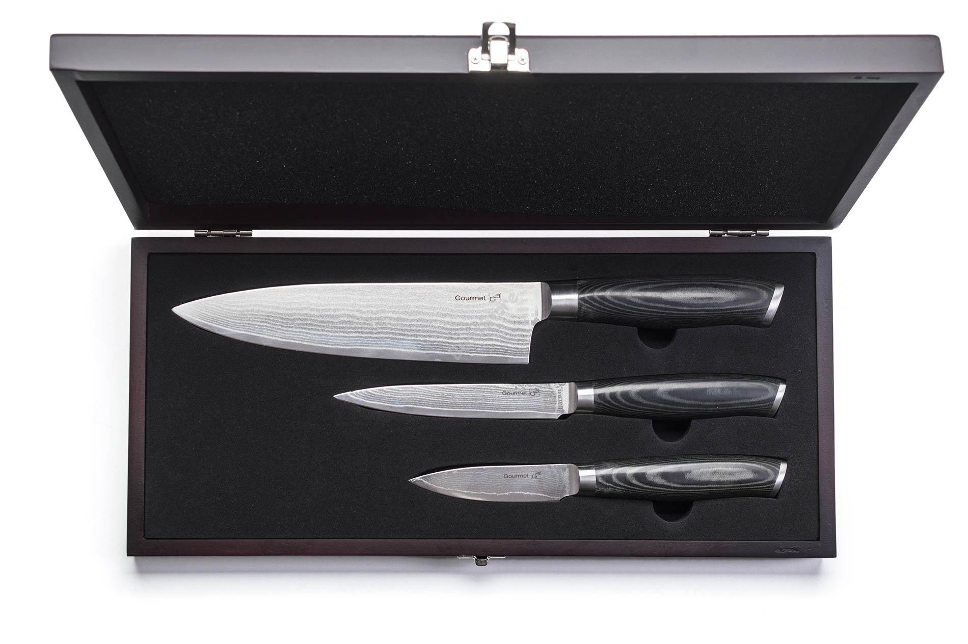 G21 Gourmet Damascus szett small box NB-D1095 47 090 Ft / db [2 db 2%] [5 db 3%] [10 db 5%] Gyártó: G21 Cikkszám: S100_60022168 Vonalkód (EAN13): 8595627412159 Súly: 1,20 kg G21 Gourmet Damascus szett small box NB-D1095 A termék leírása : Kés damaszkuszi acélból a konyhában? Igen, ez a tökéletes választás. A damaszkuszi acél erősebb és tartósabb a sima acéllal szemben, ráadásul az egyedi acél mintának köszönhetően luxus kiegészítőjévé válik a konyhájának. A minőséges G21 Gourmet Damascus, japán damaszkuszi acélból készült univerzális kések tökéletesen fognak szeletelni, vágni. Az átlagos főzésből szórakozás válik velük, melyet minden szakács és haspók értékelni fog. Minőséges anyag és kialakítás A G21 Gourmet Damascus kések pengéje minőséges 67 rétegű japán damaszkuszi VG-10 acélból készült, mely rendkívül ellenálló, stabil és hihetetlenül hosszú élettartammal rendelkezik. A rétegezett damaszkuszi acélt fegyverkészítéshez is használták. A damaszkuszi acél kettő, vagy több különféle acél egyvelege, mely egy egészet alkot. Ezek eredménye egy nagyon erős, ellenálló, ráadásul törésmentes anyag. Ezen anyagnak köszönhetően a G21 Gourmet Damascus kés éles, ellenálló, tartós és megfelelő karbantartás mellett több évtizedig is jó szolgálatot tehet. A kés markolata extra erős és ellenállót laminált anyagból készült, ún. Micrata. A micrata egy rétegelt szerkezetű, műgyantával kiöntött alapanyag, melyben nem üvegszál, hanem természetes alapanyag biztosítja a rétegeket. Így készült ez az erős,kemény markolat, mely nem enged az idő múlásának. A kés sima, egyenes, tiszta kialakítása minden konyha díszévé válik. Tokban, biztonságban Nem tudja, hova helyezze el biztonságban a késeket? Tokba! A szett része egy elegáns fából készült tok, melyben minden késnek megvan a biztonságos helye. Paraméterek: Penge anyaga: japán 67 rétegű damaszkuszi acél, VG-10 Markolat anyaga: Micrata Tok anyaga: fa 2+2 év garancia (a www.g21-vitality.cz oldalon való regisztráció után) Csomagolás méretei: 28,5 x 5 x 19 cm Súly: 1,15 kg Csomagolás tartalma: Séfkés, 21 cm Univerzális kés, 13 cm Szeletelő kés, 9 cm Fa tok Mennyiség db Kosárba tesz