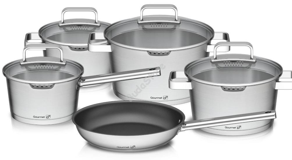 G21 Gourmet Magic 9 darabos edénykészlet fedővel rozsdamentes acél G21-001N 50 490 Ft / db [2 db 2%] [5 db 3%] [10 db 5%] Gyártó: G21 Cikkszám: S100_60022151 Vonalkód (EAN13): 8595627411398 Súly: 5,00 kg G21 Gourmet Magic 9 darabos edénykészlet fedővel rozsdamentes acél G21-001N A termék leírása : Kiváló minőségű, tartós, egyedi kialakítású precíz megdolgozással és egyedülálló tulajdonságokkal. A G21 Gourmet Magic készlet darabjai rövid id idő alatt konyhája legkedvesebb darabjaivá válnak. Miben különböznek a többi edénykészlettől? Minőségi, jól bevált anyag A Stainless Steel 304 rozsdamnetes acél , más néven 18/10 CrN króm-nikkel acél bizonyított minőségű és az egyik leggyakrabban használt anyag gasztro eszközökhöz. Az említett élelmiszeripari acél 18% krómot és 10% nikkelt tartalmaz. Az élelmiszeriparhoz különösen alkalmas, mert nem sérülékeny és ellenáll a rozsdának. Ezt még esetünkben a speciális felületi polírozás is támogatja. Páraelvezető nyílás / tésztaszűrő A leggyakrabban használt edényekkel ellentétben a páraelvezető nyílás/ tésztaszűrő a fedél oldalán van. Így nem kell félni, hogy a forró víz leöntésekor megégeti a kezét a forró vízzel vagy párával. Ha pedig nem akarja hogy a pára kicsapodódjon, elég csak a fedőt elforgatni úgy, hogy a nyílások takarásban legyenek. Kiváló fedőkialakítás Nagy hangsúlyt fektettünk a fedő kialakítására is, melyek 4 mm vastag edzett üvegből készültek. Moshatók mosogatógépben és a sütőben is használhatók 180 ° C-ig. Az előnyök összefoglalása Kiváló minőségű réteges alj, ami 5,7 mm a 16-24 cm átmérőjű fazekaknál és 4,2 mm a 24 cm-es serpenyőnél. A vastag falak 0,7 mm-esek és kiválóan, egyenletesen vezetik a hőt. Tartósan ellenállnak a karcolásoknak és a rozsdának. Az edények 350° C, a fedők pedig 180 ° C-ig ellenállnak a hőnek. Formatervezésüknek köszönhetően nem csak hatékonyan dolgoznak, de roppant elegánsak, így illenek minden konyhába. Műszaki adatok: Főzőedény fedéllel páraelvezető / tésztaszűrő nyílással (nyílások 2 méretben) 24 átmérőjű serpenyő tapadásmentes felülettel fedő nélkül Főzőedények alj vastagsága 16-24 cm-ig 5,7 mm Serpenyő 24 cm átmérővel alj vastagsága 4,2 mm Fedő edzett üvegből 4 mm vastagsággal A fedő fogantyúja szilikon burkolattal bevonva A készlet tartalma: 16 cm-es lábas üveg fedéllel (1,5 l űrtartalom) 18 cm-es fazék üveg fedéllel l (2 l űrtartalom) 20 cm-es edény üveg fedéllel (2,5 l űrtartalom) 24 cm-es edény üveg fedéllel (4l űrtartalom) 24 cm-es serpenyő tapadásmentes, fedél nélkül Mennyiség db Kosárba tesz