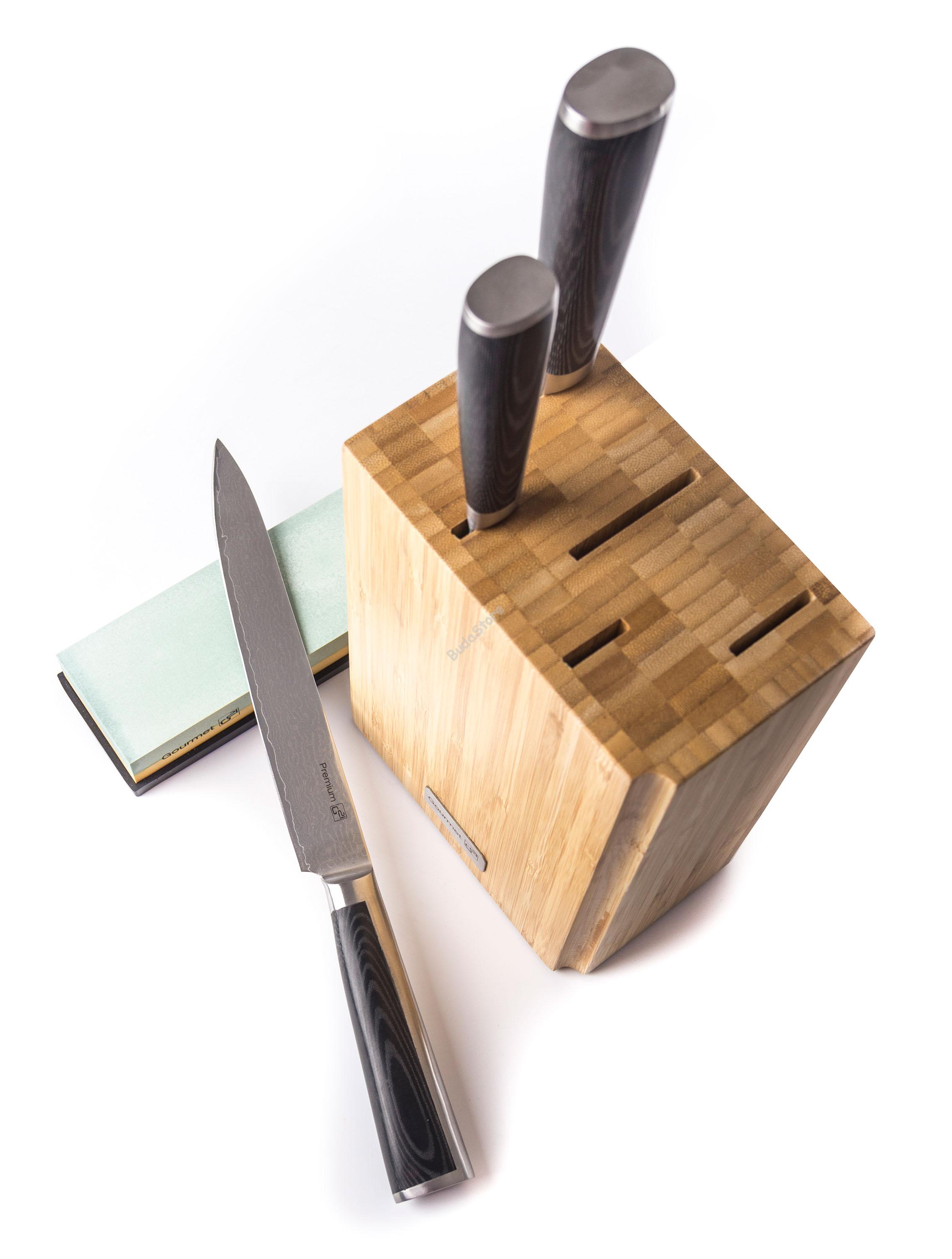 G21 Gourmet Premium Késkészlet 3db-os bambusz késtartóban csiszolókővel 6002298 67 390 Ft / db [2 db 2%] [5 db 3%] [10 db 5%] Gyártó: G21 Cikkszám: S100_6002298 Vonalkód (EAN13): 8595627422011 Súly: 3,00 kg G21 Gourmet Premium Késkészlet 3db-os bambusz késtartóban csiszolókővel 6002298 A G21 Damascus Premieum késkészlet tartalmaz egy 20 cm-es vágókést és séfkést, egy univerzális kést 9 pengével, valamint egy bambuszállványt a kések biztonságos tárolására és egy csiszolókövet. A termék leírása Kés damaszkuszi acélból a konyhában? Igen, ez a tökéletes választás. A damaszkuszi acél erősebb és tartósabb a sima acéllal szemben, ráadásul az egyedi acél mintának köszönhetően luxus kiegészítőjévé válik a konyhájának. A készlet tartalmaz egy 20 cm-es vágókést és séfkést, egy univerzális kést 9 pengével, valamint egy bambuszállványt a kések biztonságos tárolására és egy csiszolókövet 1000/3000 méretben. Prémium minőségű kivitelezés és dizájn A damaszkuszi acélból készült G21 Damascus Premium kések kiváló választás, ha szeletelésről van szó. Ajándéknak is tökéletes. A G21 Gourmet Damascus kések pengéje minőséges 67 rétegű damaszkuszi VG-10 acélból készült keménysége 60 HRC, mely rendkívül ellenálló, stabil és hihetetlenül hosszú élettartammal rendelkezik. (hagyományos késeknél a keménység 55 HRC körüli, az igazán éles kések keménysége 58-60 HRC). A kés markolata, szintén tartós, hosszú élettartamú. A rétegezett damaszkuszi acélt fegyverkészítéshez is használták. G21 Damascus Premium bambuszállványban Biztonságban, az állványban A G21 Gourmet Damascus késtartó bio bambuszfából készült. A fa a legmegfelelőbb anyag a kések tárolásához. A fa a kés becsúsztatásakor nem koptatja annyira a kést, mint más kemény anyag. Az állványban minden késnek megvan a biztonságos helye. A blokkban 5 rekesz van. A rekeszek a G21 Gourmet Damascus késkészlethez vannak méretezve. Ajándék G21 csiszoló kő Tudta, hogy főzés közben a legtöbb vágást tompa kés okozza?A tökéletesen éles kés a konyhában már fél siker. Minden amatőr és profi szakács alapfelszereltsége. Éppen ezért csomagoltuk hozzá ajándékba. A G21 kétoldalú csiszoló kő 1000/3000 szemcsemérettel, lehetővé teszi, hogy mindenféle kést tökéletesen élesre csiszolhasson, beleértve a damaszkuszi késeket is. A G21 csiszolókő vízzel való csiszoláshoz készült. TIPP: Nem ajánljuk élezni a késeket száraz felületű csiszolóval, először mindig áztassa be vízzel. Csiszolás közben, víz hozzáadásával kimosódnak a csiszoló felületéről a lecsiszolt szemcsék, így hosszabb ideig megőrzi funkcionalitását. A damaszkuszi kések előnyei A damaszkuszi acél több különböző acélból készül, amelyek biztosítják ellenálló képességét és stabilitását. Az eredmény egy kopásálló és egyben törésálló anyag. A felhasznált anyagnak köszönhetően a G21 Damascus Premium kés pengéje éles, strapabíró, erős és megfelelő gondozás mellett évtizedekig szolgál. A minőségi markolat is fontos A kés markolata extra erős és ellenálló laminált anyagból készült, ún. Micrata. A micrata egy rétegelt szerkezetű, műgyantával kiöntött alapanyag, melyben nem üvegszál, hanem természetes alapanyag biztosítja a rétegeket. Így készült ez az erős, kemény markolat, mely nem enged az idő múlásának. A kés sima, egyenes, tiszta kialakítása minden konyha díszévé válik. Meghosszabbított garancia 2+2 év A minőségért 4 év garanciát vállalunk. A 2 éves plusz garanciális időszak regisztrációhoz kötött, melyet a http://g21-warranty.com weboldalon tehet meg. Használja ki a lehetőséget, és regisztrálja a terméket a vásárlás után. Műszaki adatok Márka: G21 Modell: Damascus Premium késkészlet 3 db bambusztartóban Meghatározás: konyhakések Penge hossz Szakácskés 20 cm Vágókés 20 cm Univerzális kés 9 cm Egyéb Anyaga: 67 rétegű damaszkuszi acél VG-10 Rockwell keménységi teszt: 60 HRC A markolat anyaga: Micarta Garancia: 2 + 2 év Csomagolás méreti (Sz x Ma x Mé): 30 x 30 x 30 cm Csomagolás súlya: 2,8 kg Tanúsítvány: LFGBO Csomagolás tartalma Késkészlet G21 Damascus Premium 3 db Bambusztartó Csiszoló kő Paraméterek Darabszám a készletben 3 Meghosszabbított garancia 2 + 2 év Anyag damaszt acél Markolat anyaga micarta Tartó anyaga bambusz Védőtok / állvány Nem / igen Besorolás Konyhai kések Javasolt használat professzionális / kereskedelmi, háztartási, univerzális Mennyiség db Kosárba tesz