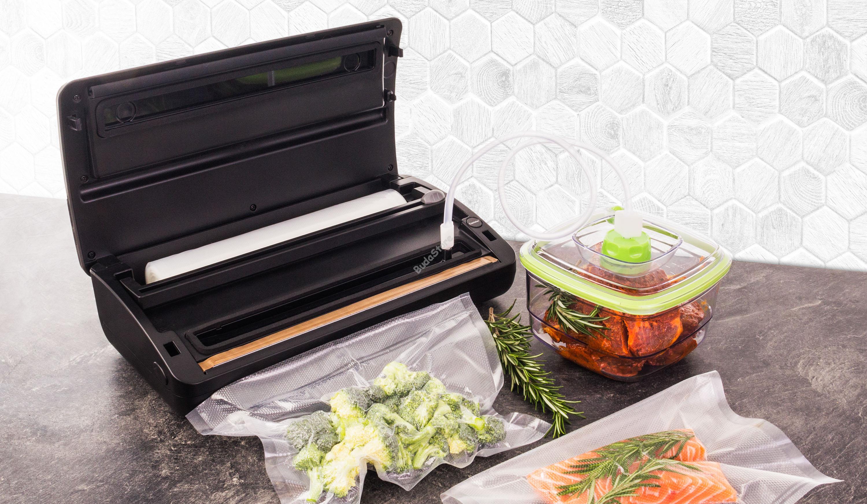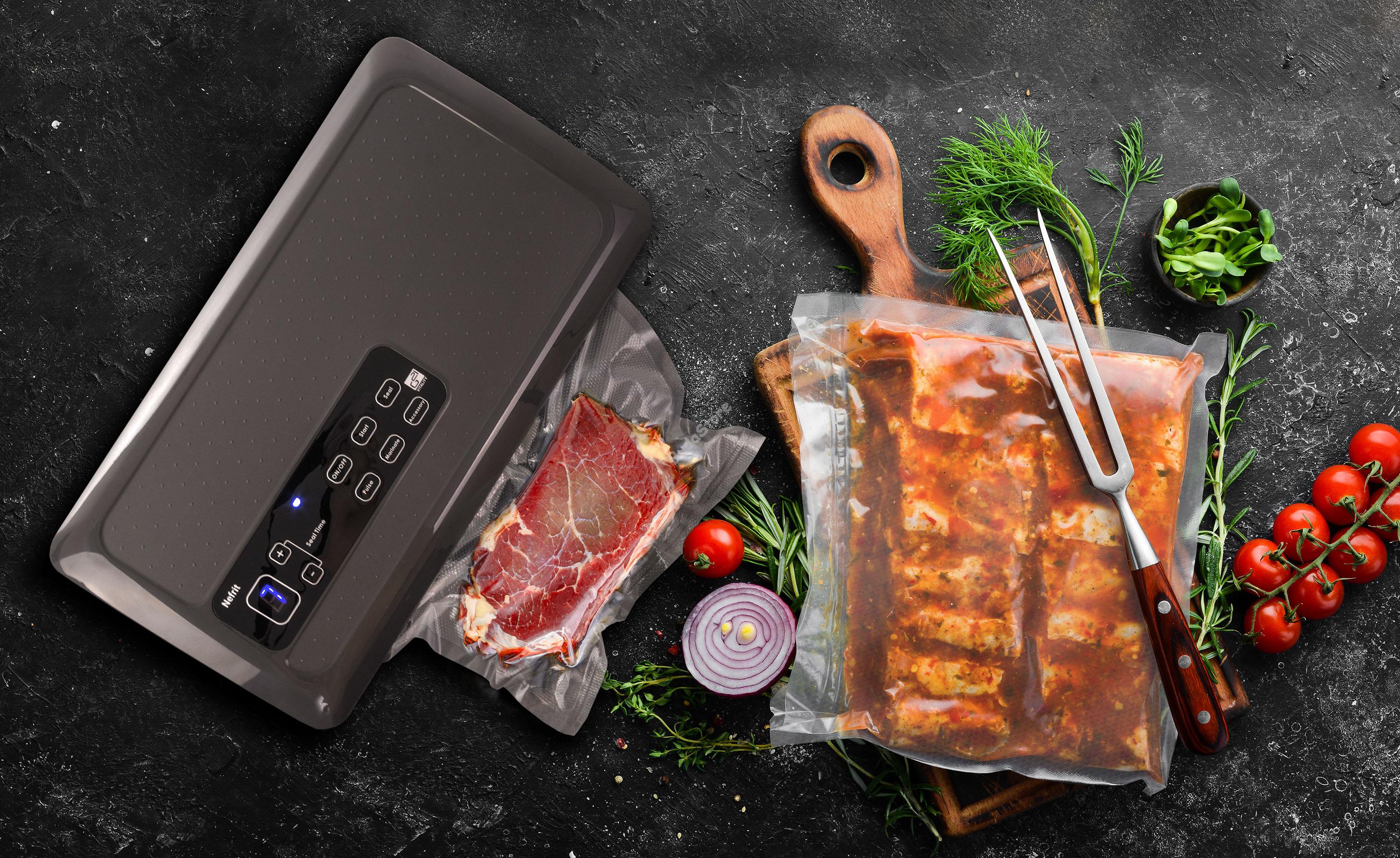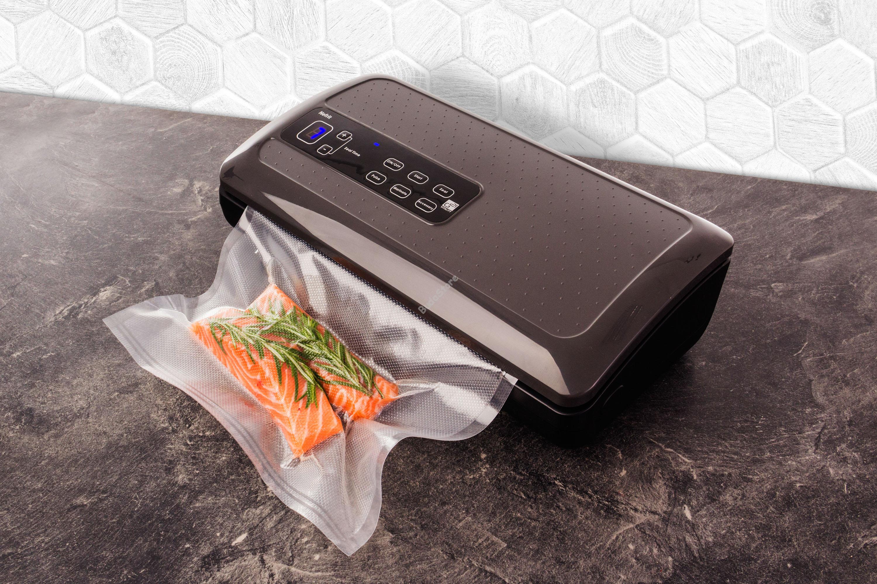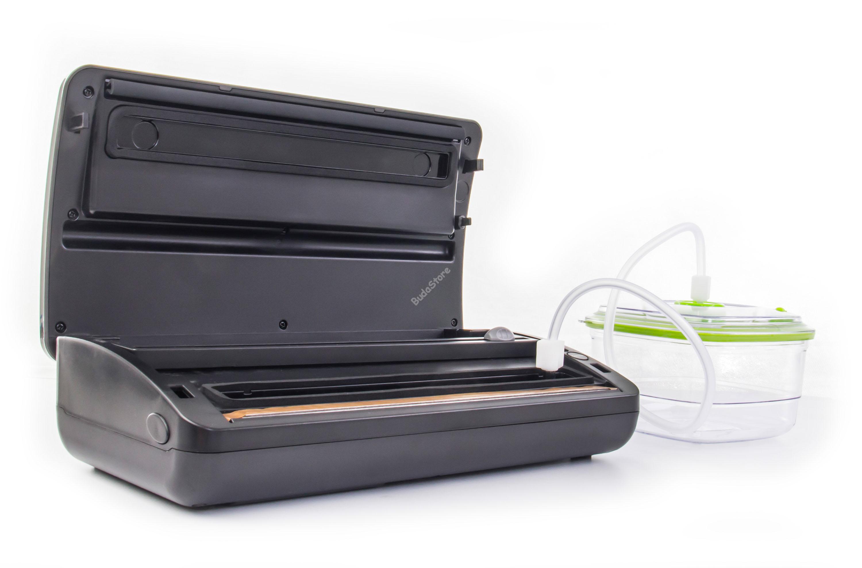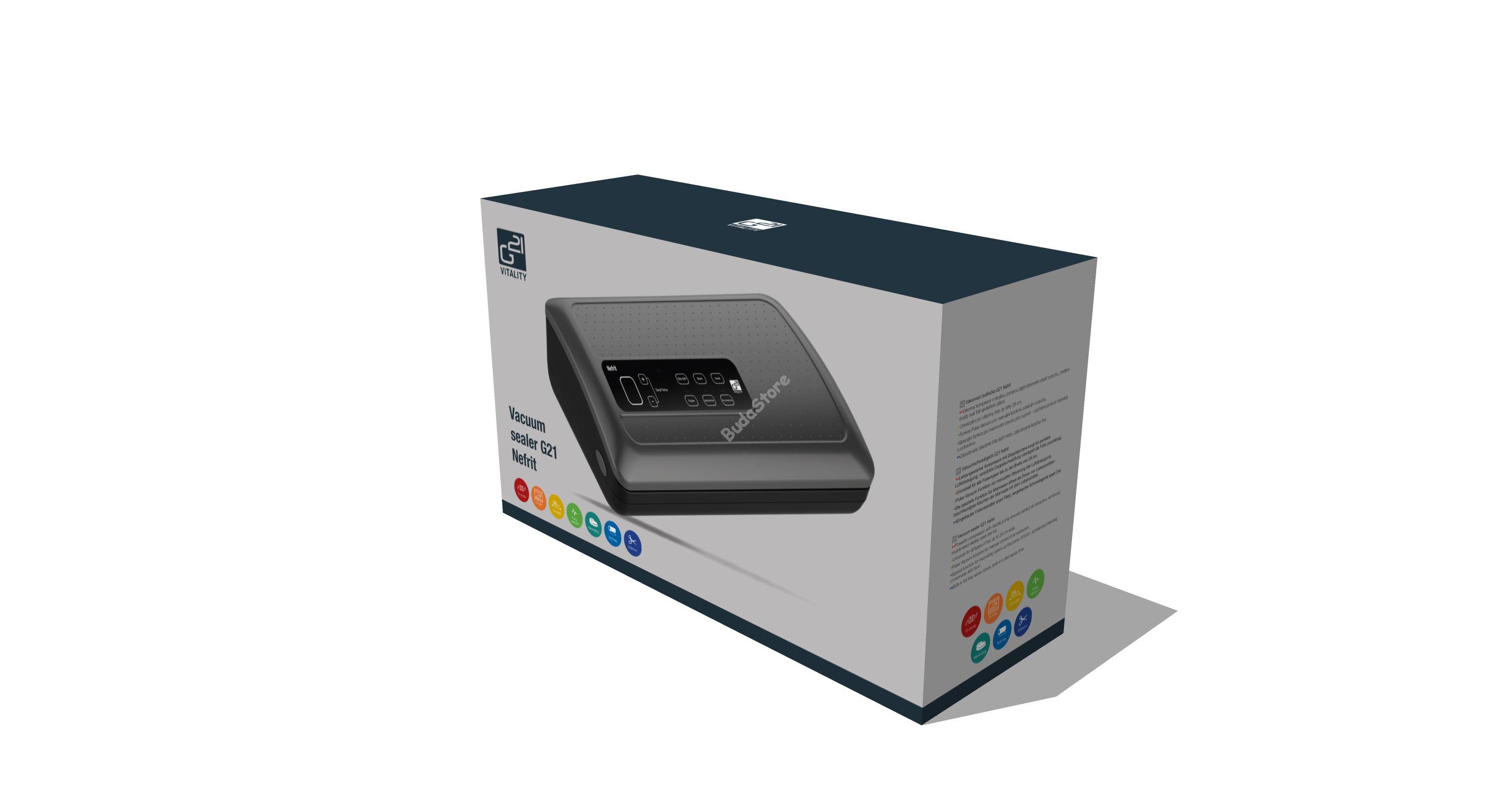 G21 Nefrit Vákuumozó fóliahegesztő 600940 50 490 Ft / db [2 db 2%] [5 db 3%] [10 db 5%] Gyártó: G21 Cikkszám: S100_600940 Vonalkód (EAN13): 8595627420536 Súly: 3,50 kg G21 Nefrit Vákuumozó fóliahegesztő 600940 Vákuumcsomagoló tartállyal a tekercseknek, erős szivattyúval tökéletes légmentesítéshez. Marinálás funkció, forrasztás dupla huzallal, legfeljebb 28 cm széles fóliákhoz. A termék leírása Vákuumcsomagoló tartállyal a tekercseknek, erős szivattyúval tökéletes légmentesítéshez. Marinálás funkció, forrasztás dupla huzallal, legfeljebb 28 cm széles fóliákhoz. A G21 Nefrit vákuumos fóliahegesztő gép előnyei Vákuumcsomagoló tartállyal a tekercseknek és vágóval ellátott G21 Nefrit már az első használat után elnyeri tetszését. Kicsi, ugyanakkor nagyon erős és megbízható. A dupla szivattyú biztosítja a tökéletes légelszívást, és a speciális forrasztás dupla huzalokkal megbízhatóan lezárja a csomagolást. Használhatja az élelmiszerek eltarthatóságának meghosszabbítása, lefagyasztása vagy sous-vide főzés céljából. A vákuumban lévő összetevőket így megvédi a levegő hatásaitól. Az eredmény egy ízében tökéletes, gazdag aromájú, színű a természetes savakkal teli étel. Az elkészített steak porszívózása G21 Onyx vákuumhegesztővel. Grillezésre kész G21 vákuumzsákban pácolt hús. Könnyű kezelhetőség, univerzális használat A A G21 Nefrit vákuumozó nemcsak az élelmiszer csomagolásának lezárását teszi lehetővé, hanem a levegő kiszívását a Pulse Vacuum funkcióval, vagy az olvadási idő beállítását a fólia típusától függően. Egy másik fontos funkció - vákuumozás pácoló edényben A A G21 Nefrit vákuumozó nemcsak vákuumzsákokból vagy fóliákból tudja kiszívni a levegőt, hanem a vákuumpácoló edényekből is. Csak csatlakoztassa a tömlőt a G21 vákuumpácoló edény nyílásához (a tömlő része a doboz csomagolásának) 1,4 vagy 2 literes térfogattal, nyomja meg a megfelelő vezérlőgombot, és a dobozban lévő levegő megbízhatóan kiürül. A G21 Nefrit előnye - pácoló funkció Amennyiben pácolt ételt szeretne vákuumozni, használja a "Marinálás" funkciót. A bepácolt hús behelyezése után a hús pórusai ismételt szívással és a levegő beáramlásával kibővülnek, így a fűszerkeverék jobban bejuthat a hús rostjai közé. Vákuumozott zöldségfélék és lazac főzésre készen áll a Sous-vide G21 Akura tűzhely segítségével. Vákuum hegesztő G21 pácoló hús betöltött tartályba G21. Minimális szükséges eszköz a főzéshez A sous-vide főzőnek köszönhetően az otthoni főzést egy magasabb szintre emelheti. Még speciális eszközökre és felszerelésekre sincs szüksége, csupán minőségi alapanyagok, egy fazék víz, egy sous-vide G21 Akura főző és egy G21 Nefrit vákuumozó szükséges. A G21 Nefrit vákuumozó fő előnyei erős dupla szivattyúval forrasztás dupla huzalokkal a megbízható tömítés érdekében vákuumcsomagoló tartálly a tekercseknek "Marinálás" funkció az olvadási idő beállítása a fólia típusától függően fóliában vagy pácoló vákuumpácoló edényben történő vákuumozás minőségi tervezés, egyszerű kezelés Specifikációk Teljesítmény: 200 W Nyomás: -28,3 "Hg / -958 mbar Max. fólia szélessége: 28 cm Anyaga: műanyag Forrasztás dupla huzallal: Igen Levegő elszívás: Igen Tápkábel hossza: 1,2 m Színkialakítás: fekete test, szürke fedél Méretek (Sz x Ma x Mé): 380 x 108 x 200 mm Súly: 2,8 kg A csomag méretei (Sz x Ma x Mé): 435 x 155 x 255 mm A csomag súlya: 3,13 kg Mennyiség db Kosárba tesz