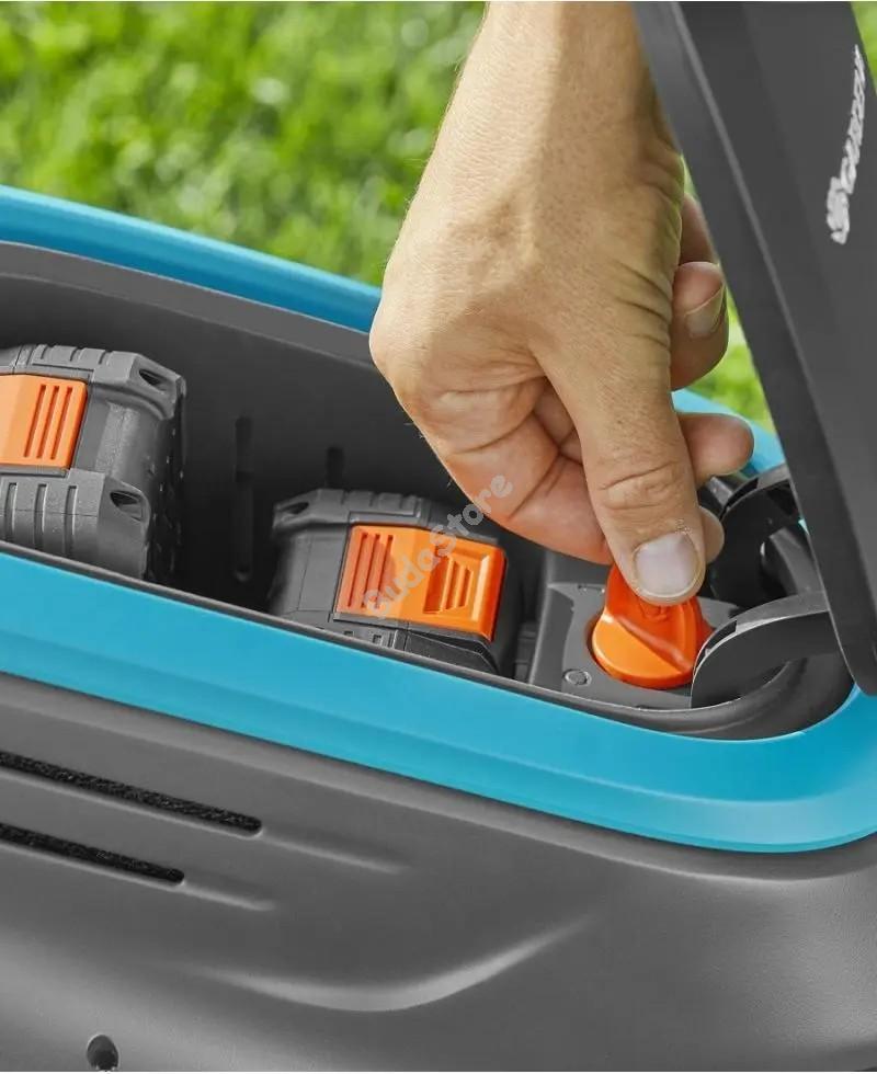 Gardena PowerMax 37/36V P4A akkumulátoros fűnyíró akkumulátor nélkül - 14638-55 128 600 Ft / db [2 db 2%] [5 db 3%] [10 db 5%] Gyártó: GARDENA Cikkszám: S052_14638-55 Vonalkód (EAN13): 4078500062008 Súly: 14,50 kg Prémium gyepápolás: ez a GARDENA megbízható PowerMax 37/36V P4A akkumulátoros fűnyírója. A prémium modell nagy teljesítménye, kényelmes működése és magas hatékonysága lenyűgöző. A fűnyíró kompatibilis a POWER FOR ALL ALLIANCE összes akkumulátorával. A használt akkumulátor típusától függően az üzemidő akár 500 m2 gyepfelületre is elegendő. A precíziós csiszolású, 37 cm széles, kettősen edzett DuraEdge kés tökéletes és egyenletes vágást biztosít. A telítettségjelző mutatja, hogy mikor van itt az ideje kiüríteni a 45 literes textilgyűjtőt. Az optimálisan irányított légkeringésnek és a 30 literes fűgyűjtő ideális elhelyezésének köszönhetően több nyesedéket gyűjt össze. Ezzel időt takaríthatsz meg, mivel kevesebbszer kell kiürítened a gyűjtőt. A PowerMax 37/36V nagy teljesítményű kefe nélküli motorja még gyakori használat után sem hagy cserben. Hatékony marad és hosszú élettartammal rendelkezik. A fűnyíró az ErgoTec-Plus tolókarral ergonomikusan használatható - függetlenül attól, hogyan fogod a tolókart. Ezáltal az akkumulátoros fűnyíróval való munka nagyon kényelmes, még hosszú időn keresztül is. A még nagyobb kényelem érdekében egyszerűen állítsd a fűnyírót a teleszkópos tengellyel a testmagasságodhoz. A tolókaron található LED-kijelzőn azonnal láthatod az akkumulátor töltöttségi szintjét. Az Eco üzemmódot itt, a tolókaron egy gombnyomással aktiválhatod. Az Eco üzemmód energiatakarékos és meghosszabbítja a POWER FOR ALL akkumulátor üzemidejét. A fűnyírás előtt a középen elhelyezett QuickFit-Plus gombbal könnyedén, egy kézzel beállíthatod a vágási magasságot 35 és 65 mm között. A terelőfogak segítségével minden területet - még a nehezen elérhető helyeket is a falak és szélek mentén - lenyírhatsz a hibátlan vágási eredményért. A fűnyírás után a tolókar praktikusan összecsukható a vezeték nélküli fűnyíró helytakarékos tárolásához. A GARDENA PowerMax 37/36V P4A akkumulátoros fűnyíró töltő és a két szükséges POWER FOR ALL akkumulátor nélkül kerül forgalomba. A POWER FOR ALL ALLIANCE bármelyik akkumulátorával kompatibilis. A POWER FOR ALL ALLIANCE a vezető akkumulátorgyártók egyik legnagyobb márkafüggetlen szövetsége, amelynek akkumulátorai számos kerti és háztartási eszközben használhatók. Így pénzt takaríthatsz meg, miközben rugalmas maradsz! A legjobb teljesítmény érdekében legalább 4,0 Ah-s akkumulátor használata ajánlott. Akkumulátorral és töltővel szeretnéd megvásárolni a készüléket? Semmi akadálya - akkor a Használatra kész készlet (cikkszám: 14638-20) a megfelelő a számodra. A GARDENA a minőségi termékre három év gyártói szavatosságot biztosít, egyszerű online regisztrációt követően. Szenvedély a GARDENA-val EGYETLEN akkumulátorrendszer a kertben végzett összes feladathoz. Mennyiség db Kosárba tesz