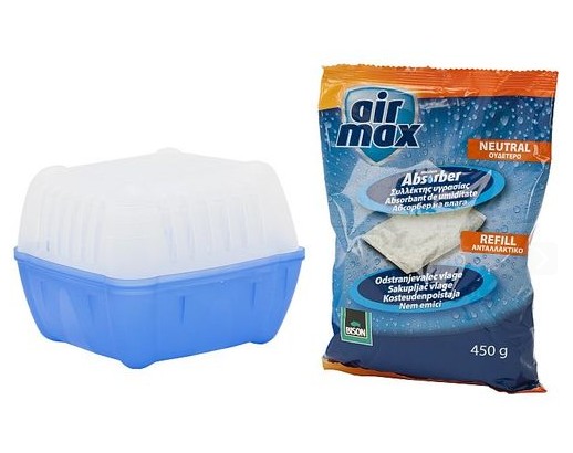 Globiz páramentesítő Airmax 450g BISON - B01473 3 300 Ft / db Gyártó: GLOBIZ Cikkszám: S052_B01473 Vonalkód (EAN13): 8710439220055 BISON Airmax páramentesítő kivonja a felesleges párát a levegőből az egészséges páratartalom (50-60%) eléréséig. A páramentesítő higiénikus környezetet teremt és véd a felesleges párától. Hosszan tartó hatás 30m3 (450g-os), 60m3-ig (1kg-os). Szagmentes. A szikaktív granulátumok megkötik a levegő páratartalmát megakadályozzák a páralecsapódást, a penészt, penészfoltosodást, korróziót és a dohos szagot.Tároló / tartalom:utántölthető adagoló / 450gAnyag:kalcium - kloridPh-érték:kb. 10phVízfelvétel:kb. 1g víz / sóTömeg/m3:450g / 30 m3-ig Mennyiség db Nem rendelhető