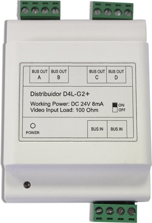 Golmar D4L-G2+ 119568 11 400 Ft / db [2 db 2%] [5 db 3%] [10 db 5%] Gyártó: GOLMAR Cikkszám: S003_119568 Átvétel: Ez a termék boltunkban személyesen is átvehető. Video disztribútor egység Soul szettekhez. - "G2+" kétvezetékes rendszerrel kompatibilis. - Egy bemenet és négy kimenet. - Fogyasztás: VDC24V/8mA. - Video kimenet impedanciája 100 ohm. - CE minősítés. Mennyiség db Kosárba tesz