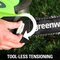 Greenworks Láncfűrész akkumulátoros G40CS30II 40V 3/8-1.3-45 szemes akku- és töltő nélkül 2007807-GW 51 020 Ft / db [2 db 2%] [5 db 3%] [10 db 5%] Gyártó: GREENWORKS Cikkszám: S006_2007807-GW Súly: 2,80 kg Átvétel: Ez a termék boltunkban személyesen is átvehető. A Greenworks G40CS30II egy erőteljes, mégis könnyű kialakítású láncfűrész, amely 30 cm-es vágószerkezettel rendelkezik. A gép egy fejlett 40 V-os lítium-ion akkumulátorral működik, amely kompakt méret mellett is nagy teljesítményt biztosít. A 40 V-os termékcsalád részeként az akkumulátor más Greenworks eszközökben is használható, így rugalmas és költséghatékony megoldást kínál. A nagy teljesítményű szénkefés motor 4,2 m/s láncsebességet biztosít a hatékony vágás érdekében. A 30 cm-es vezetőlemez lehetővé teszi a legtöbb rönk és tűzifa könnyed darabolását. Az automatikus láncolajozás gondoskodik az egyenletes működésről és a hosszabb élettartamról. A szerszám nélküli láncfeszítő rendszer gyors és egyszerű beállítást tesz lehetővé. A beépített láncfék azonnal leállítja a láncot visszarúgás esetén, növelve a biztonságot. A kétgombos indítási rendszer megakadályozza a véletlen bekapcsolást. A vezeték nélküli kialakításnak köszönhetően nincs szükség benzinre vagy hosszabbítóra, csak az akkumulátor behelyezésére és már kezdődhet is a munka. Feszültség:40V Vezető hossza:30 cm Olajtartály térfogata:120 ml Olajozó rendszer:automatikus Hangteljesítmény szintje:96 dB Hangnyomás:91 dB Rezgésszint:< 2,5 m/s2 Vágások száma (2Ah):65 vágás 10 cm-es fán Vágások száma (4Ah):120 vágás 10 cm-es fán Súly:2,74 kg Lánc:3/8" Lánc sebessége:4,3 m/s Vágások száma (2Ah):65 darab 10 cm-es fát vág Vágások száma (4Ah):120 darab 10 cm-es fát vág Szerszám nélküli láncfeszítés:Igen Csomagolás méret:35x25x18.5 Típusok: Greenworks: G40CS30II, Mennyiség db Kosárba tesz