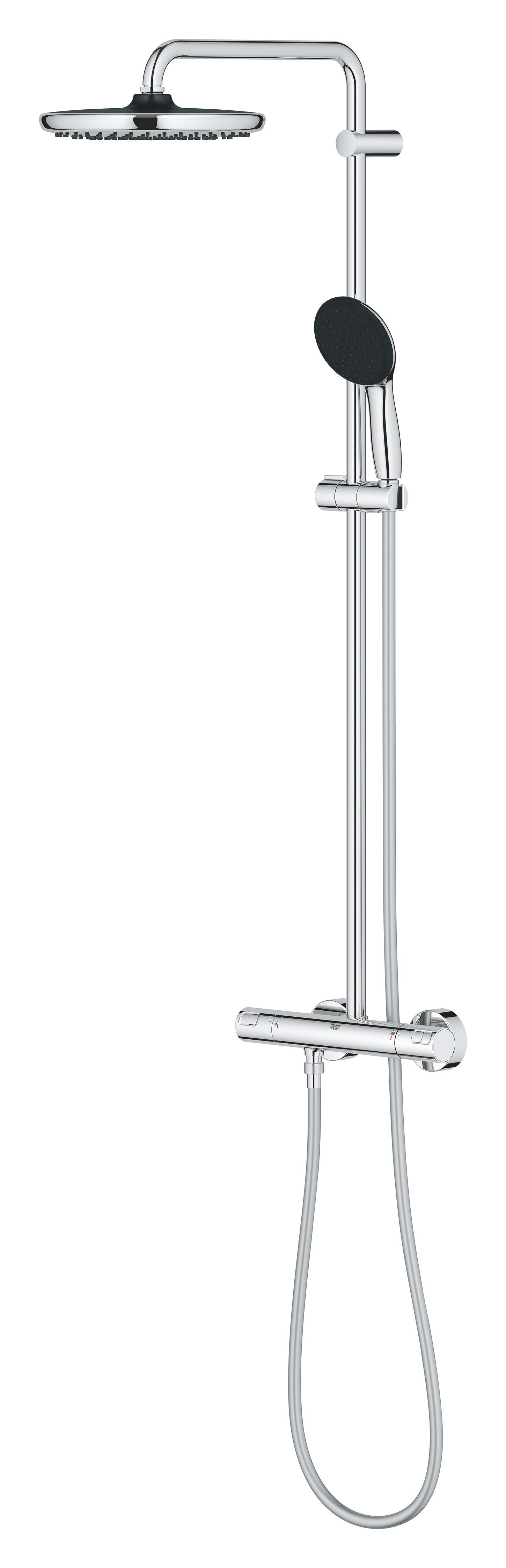 Grohe Vitalio Start System 250 króm Termosztátos zuhanyrendszer falra szerelésre - Gr.26677001 142 700 Ft / db [2 db 2%] [5 db 3%] [10 db 5%] Gyártó: GROHE Cikkszám: S052_Gr.26677001 Vonalkód (EAN13): 4005176767210 Súly: 6,30 kg az alábbiakból áll: vízszintesen elforgatható 390 mm-es zuhanykar falon kívüli termosztát Aquadimmerrel lehetővé teszi a vízkimenetek közti váltást head shower Vitalio Start 250 zuhanysugár: Rain funkció Fejzuhany fekete hátsó takaróval gömbcsuklóval forgási szög ± 10° hand shower Vitalio Start 110 (27 946) 2-féle vízsugárral: Rain, Jet funkciók maximális átfolyási sebesség (3 bar-nál): 7,4 l/perc magasságában állítható kézizuhany tartó VitalioFlex Comfort zuhanygégecső 1750 mm 1/2" x 1/2" (28 745) GROHE TurboStat tágulótestes termoelem GROHE Water Saving technológia a kisebb vízfogyasztás érdekében GROHE SafeStop fogantyú 38°C-nál biztonsági retesszel GROHE SafeStop Plus opcionális hőmérséklet maximalizáló 43°C-nál (csomagolásban) GROHE SmartSwitch – egyszerűen forgassa el a tárcsát, hogy élvezhesse a kívánt vízszórási lehetőséget GROHE DreamSpray tökéletes zuhanysugár GROHE Long-Life felületkezelés SpeedClean vízkőmentesítő fúvókákkal Inner WaterGuide belső vízvezető cső a hosszabb élettartam érdekében Ütésálló szilikongyűrű megakadályozza a károsodást a zuhany leejtésekor TwistStop csavarodásmentes zuhanygégecső átfolyó rendszerű vízmelegítővel is használható (min. 18 kW/h) minimális átfolyás 7 liter/perc 5 színű csomagolás GROHE QuickSpanner included in chrome variant only Fogyasztói verzió Mennyiség db Kosárba tesz