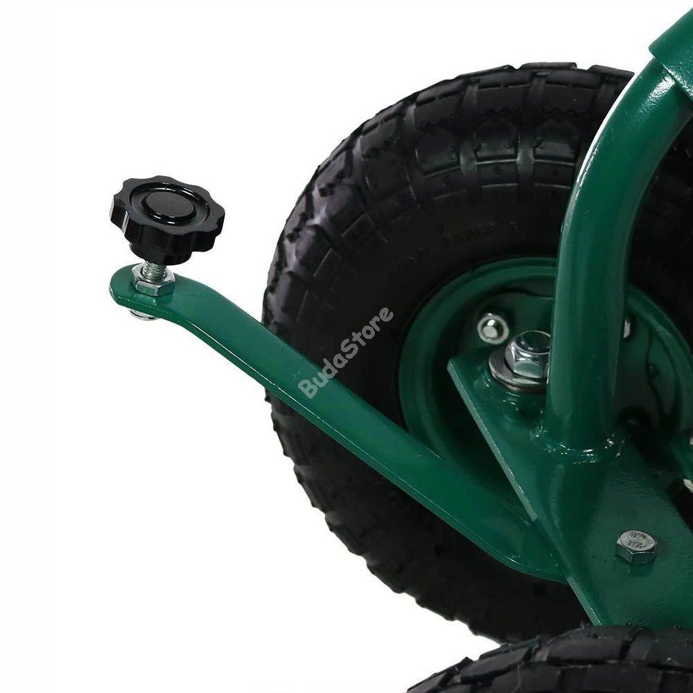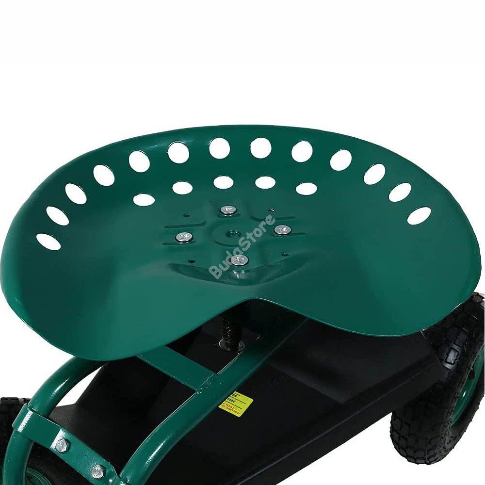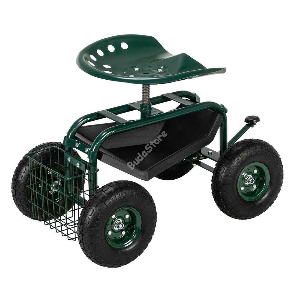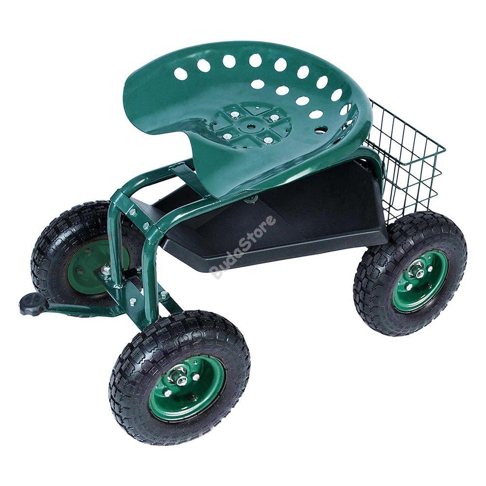 A guruló kerti ülőke ülőfelülete 360°-ban forgatható, nagyméretű gumi kerekei a legtöbb felületen könnyedén elgurulnak.