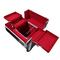 Belül, piros szövet borítása van, kívül pedig fekete műanyag, melyet a lekerekített éleknél fém lapok védenek.