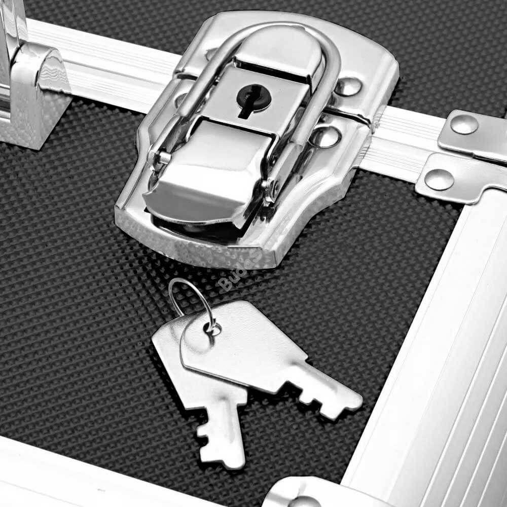 Dupla, csatos zárral van ellátva, melyeket a mellékelt kulcsokkal lezárhatsz, így nem nyithatja ki más.