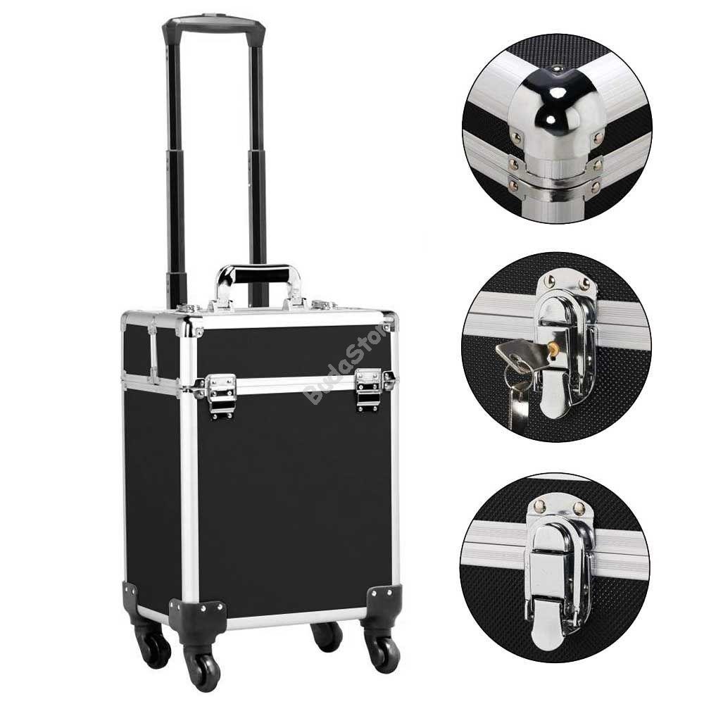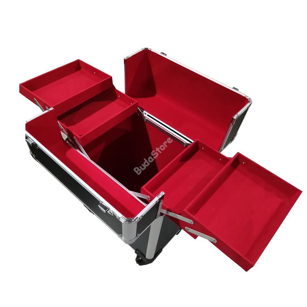 Smink bőröndünk kifejezetten kozmetikusoknak, műkörmösöknek és fodrászoknak lett kifejlesztve. Kihajtható kisebb tálcáiban elkülönítve, rendezetten tárolhatod a különböző ecseteket, kellékeket, csatokat, míg a belső nagy tárolóba neszeszerek, hajszárító és akár ruhák is elférnek.