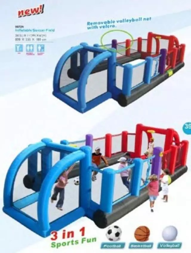 HAPPYHOP 9072N Infatable Soccer Field - felfújható focipálya 175 000 Ft / db Gyártó: HAPPYHOP Cikkszám: S051_9072N Súly: 29,00 kg Átvétel: Ez a termék boltunkban személyesen is átvehető. HAPPYHOP 9072N Infatable Soccer Field - felfújható focipálya Méretei: 8 x 3,35 x 1,8 m (H x Sz x M) Egyszerre 5 gyermek használhatja 10 éves korig Csomag méretei: 84 x 45 x 43 cm (H x Sz x M) Csomag tartalma: légvár + befúvó motor + szállító táska + rögzítő cövekek + javító készlet A csomag súlya: 29 kg Anyaga: duplán laminált PVC Garancia: 1 év Igazi sportrajongók ide! Ez a sportpálya igazán feldobja a hangulatot. Háromféle játékot játszhatunk benne: focit, kosárlabdát és röplabdát anélkül, hogy a kertben bármi vagy bárki megsérülne egy eltévedt labda találatától. A röplabda hálója igény szerint felszerelhető/eltávolítható. EGYÉB INFÓ Kiváló minőségű ugrálóvár, melyet a legmagasabb műszaki színvonalon gyártanak. Az anyagokon minden varrás duplán varrott, ezáltal rendkívül tartós és megbízható minőségű. Az ugrálóvárat egy nagy teljesítményű ventilátorral szállítjuk, mely segítségével, mindössze 1-2 perc a légvár felállítása. A ventilátor folyamatosan működik és kellő mennyiségű levegőt juttat a légvárba, hogy azt gyermekeink megfelelően és biztonságosan tudják használni. A légvár természetesen tesztelt és bevizsgált termék, így megfelel az európai előírásoknak. Javasoljuk, hogy a légvárat egy műanyag lapra állítsuk fel az alj védelme érdekében. Tulajdonságok: Rendkívül erős és tartós anyagból készült Folyamatos légbefúvással működik Duplán laminált PVC anyag Nagy teljesítményű ventillátor - 220-240V Megfelel az Európai biztonsági szabványoknak A légvár CN / EN17 / ASMT jóváhagyott termék A ventillátor TÜV / GS jóváhagy Gyorsan, mindösszesen 1-2 perc alatt felállítható A csomag tartalmazza az összes szükséges tartozékot is Happy Hopp termékek családi ill. magánhasználatra készültek. Nem magánhasználat esetén - játszóházak, gyermekmegőrzők, céges, vállalkozói felhasználás ill. minden cégszámlára történő vásárlásnál - a garancia a befúvóra 6 hónap, a gyártási ill. anyaghibára 1 hónap. A gyártási ill. anyaghibára vonatkozó garancia nem érvényes a sérülés mentén, ill. közvetlen közelében, szabad szemmel is megállapíthatóan hiba nélküli, ép, homogén szerkezetű anyag, ép szálszerkezetű cérna mechanikus túlterhelésből vagy egyéb gondatlan kezelésből (pl. kiszúródás) származó sérülésére, megnyúlására, szakadására. A nem gyártási ill. anyaghibából származó sérülésekre a garancia nem érvényes. Súly: 29 kg Garancia: 1 év Mennyiség db Kosárba tesz