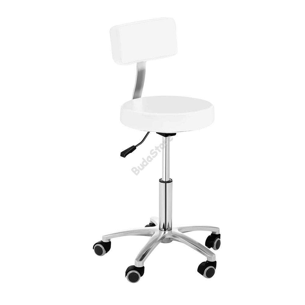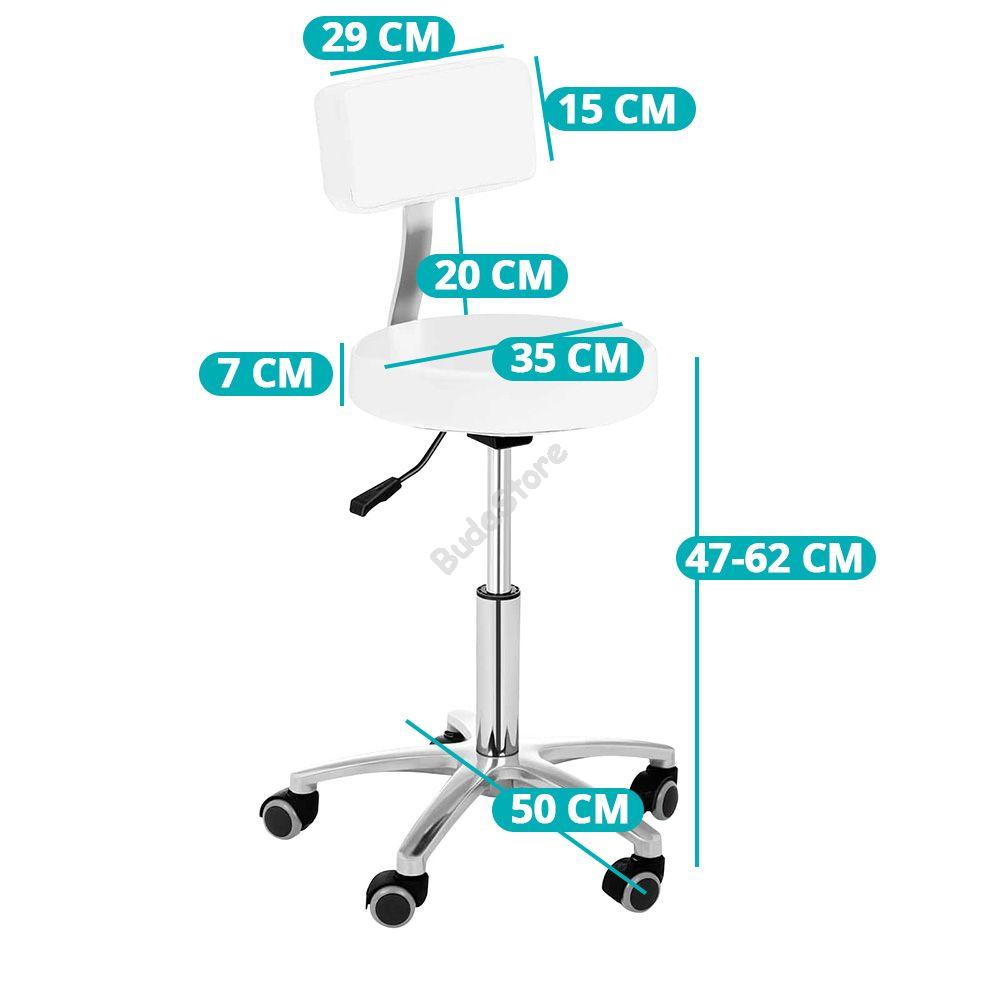 Háttámlás kozmetikai székünk alkalmas fodrászatokba, kozmetikai szalonokba, tetováló szalonokba vagy akár otthoni felhasználásra is. Magassága gázlifttel állítható, így kényelmes munkavégzést biztosít. Párnázott ülőfelülete kényelmes, görgős lábaival és forgó ülésével szükség szerint könnyen mozoghatsz vele. Egyszerű, modern kialakításával bármilyen stílusú szalonba vagy otthonba beillesztheted.
