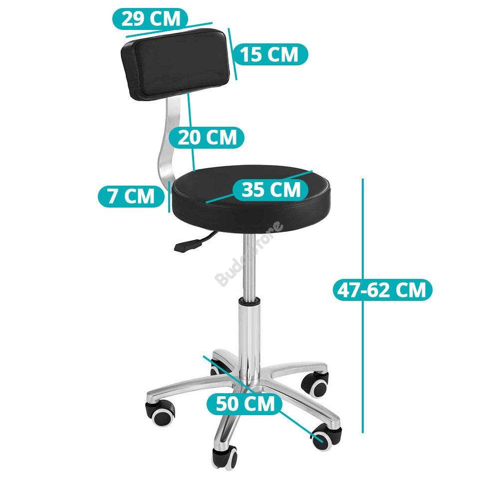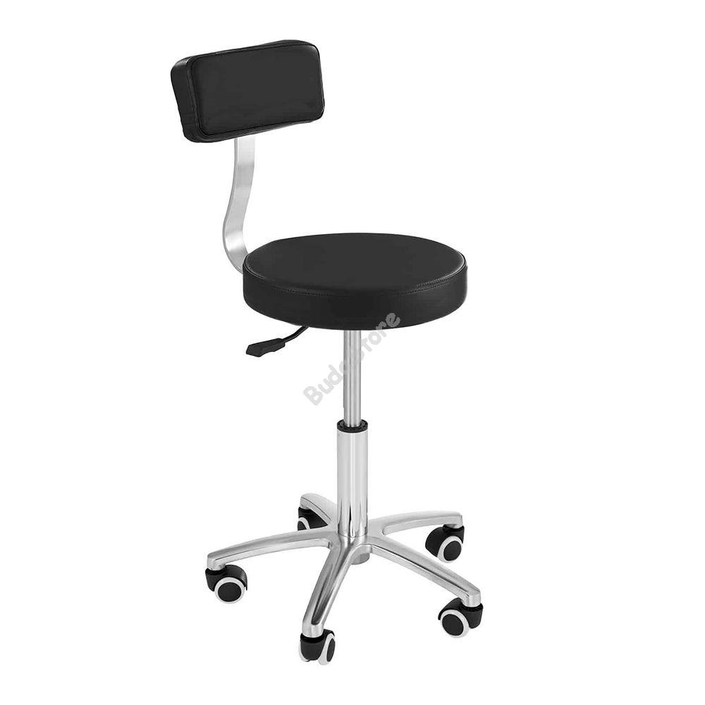 Háttámlás kozmetikai székünk alkalmas fodrászatokba, kozmetikai szalonokba, tetováló szalonokba vagy akár otthoni felhasználásra is. Magassága gázlifttel állítható, így kényelmes munkavégzést biztosít. Párnázott ülőfelülete kényelmes, görgős lábaival és forgó ülésével szükség szerint könnyen mozoghatsz vele. Egyszerű, modern kialakításával bármilyen stílusú szalonba vagy otthonba beillesztheted.